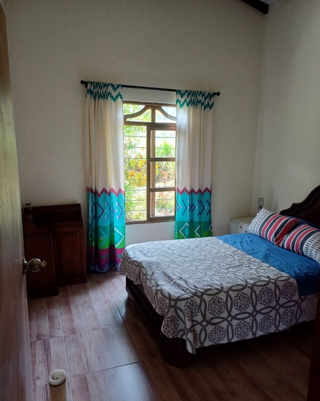 Casa con excelente ubicación en el municipio de Alejandría, ven y disfruta de los sitios turísticos naturales que ofrece este municipio. El alojamiento es amplio, ideal para todo tipo de parejas o grupos. Cuenta con 3 habitaciones, 2 baños, 2 balcones (uno con un gran espacio para compartir), cocina totalmente equipada, sala, comedor, patio, internet, televisor, equipo de sonido. La casa se encuentra totalmente amoblada.