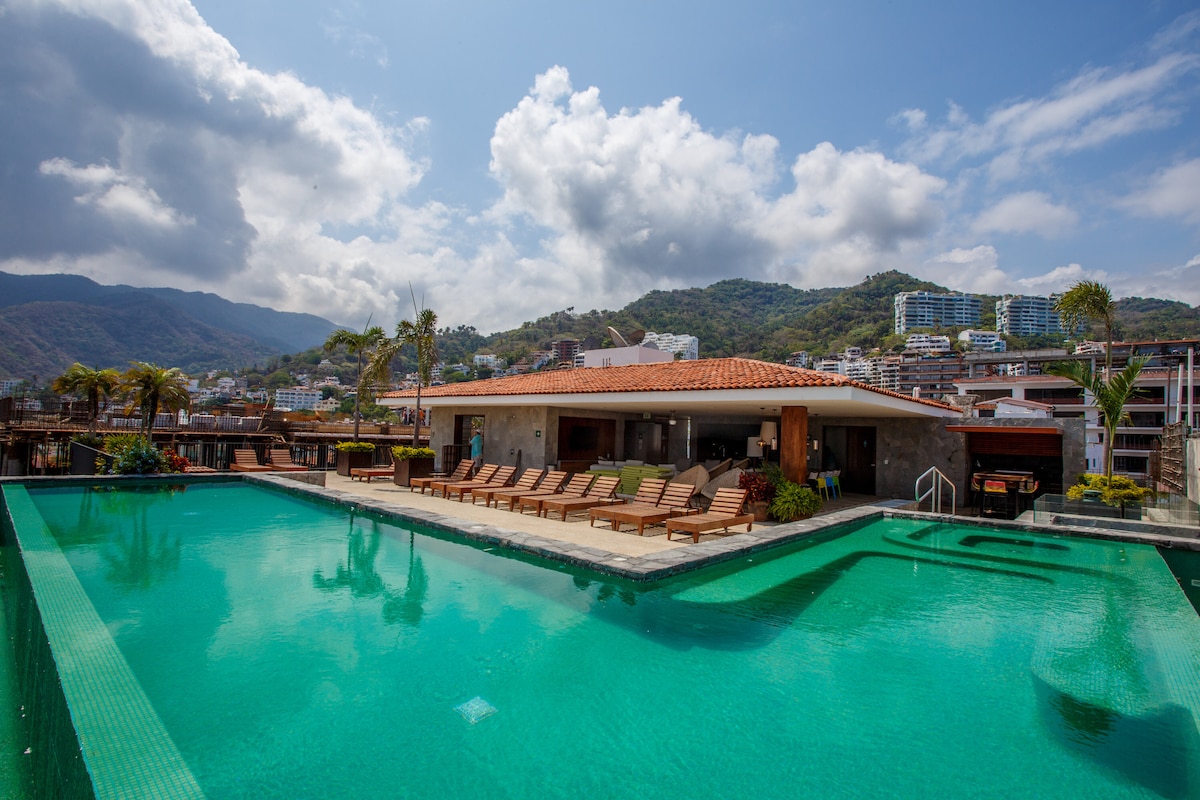 Živite visoko življenje ❤️v Puerto Vallarti! Dobrodošli v penthouseu SailView — ekskluzivnem luksuznem prenočišču s površino 4000 kvadratnih metrov v osrčju živahne cone Romántica, le ulico stran od plaže Los Muertos. Uživajte v osupljivem razgledu na ocean iz te čudovite prostorne 3-posteljne enote s 3,5 kopalnicami in 4 zasebnimi balkoni z neverjetnim razgledom na zaliv, gore in staro mestno jedro. Stopnice od priljubljenega pomola Los Muertos, restavracij in živahnih barov. VIP storitve. Zaprtje bazena ⚠️na strehi od 9. do 15. septembra 2025⚠️