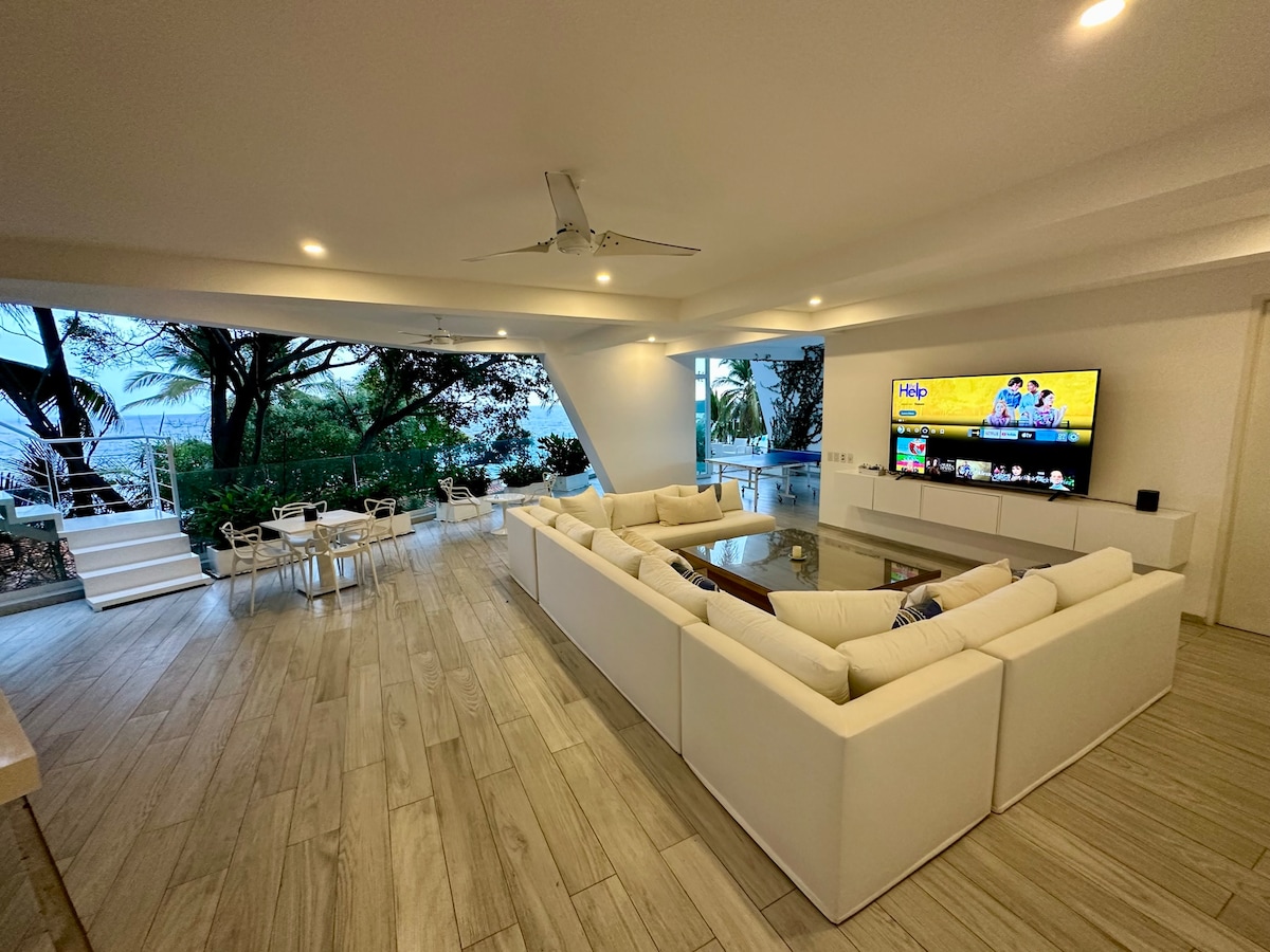 Neverjetne 3 spalnice, 3,5 kopalnice. stanovanje se nahaja v 8. nadstropju kondominija ob oceanu sayan Beach, ki ima najboljšo streho v vsej puerto Vallarti! V celotnem stanovanju so velika bela marmorna tla s prostorskim zvokom, hitrim internetom, 4 televizorji, Dish Usa, Vitra in Restoratio Hardware pohištvo, spektakularen razgled na zaliv in plažo Los Muertos, stavba ima 3 bazene v preddverju in neskončen bazen na strehi, 2 jacuzzija, savna, masažna soba in telovadnica.