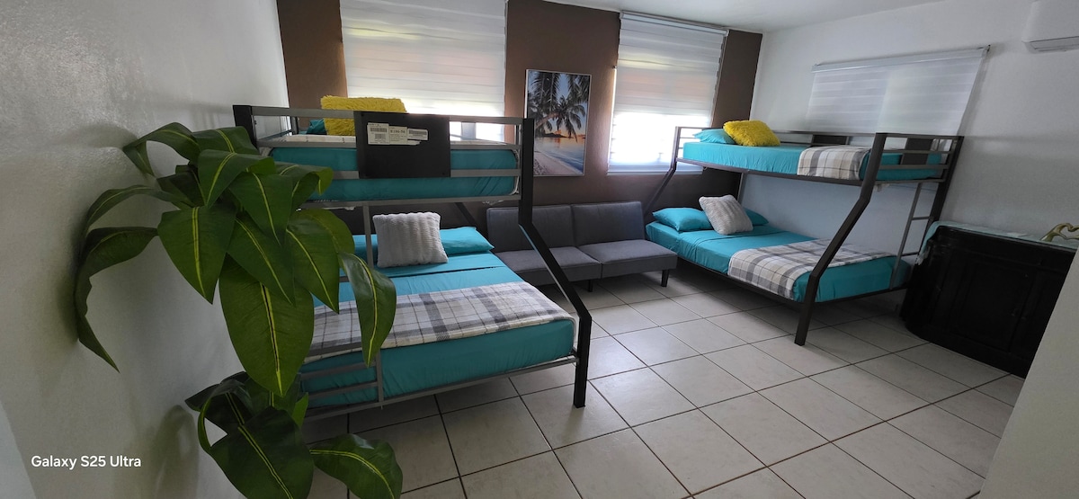 Oseba, ki je odgovorna za rezervacijo, mora biti stara 21 let ali več. Tu Familia bo blizu vsega, ko boste bivali v tej nastanitvi v središču mesta. Najboljša lokacija… Turkizna vila je čudovito prenočišče, ki se nahaja le 10 minut od letališča,nakupovalnega središča San Juan , plaž na trgu Plaza Carolina z zelenim otokom in starega San Juana. Nastanitev ima generator luči »nikoli ne boste« Brez 💡 svetlobe.