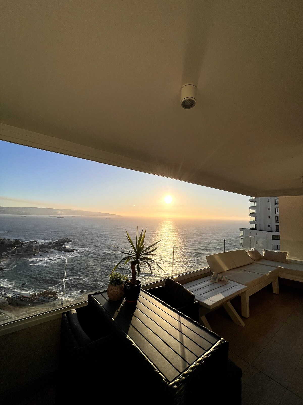 Sodobno stanovanje v stanovanjski stavbi, ki je popolnoma opremljeno za sprostitev nad morjem s pogledom na zaliv Valparaiso. Blizu supermarketov, restavracij in nakupovalnih središč. S centralnim ogrevanjem in optičnim internetom za delovanje ali klimatizacijo.