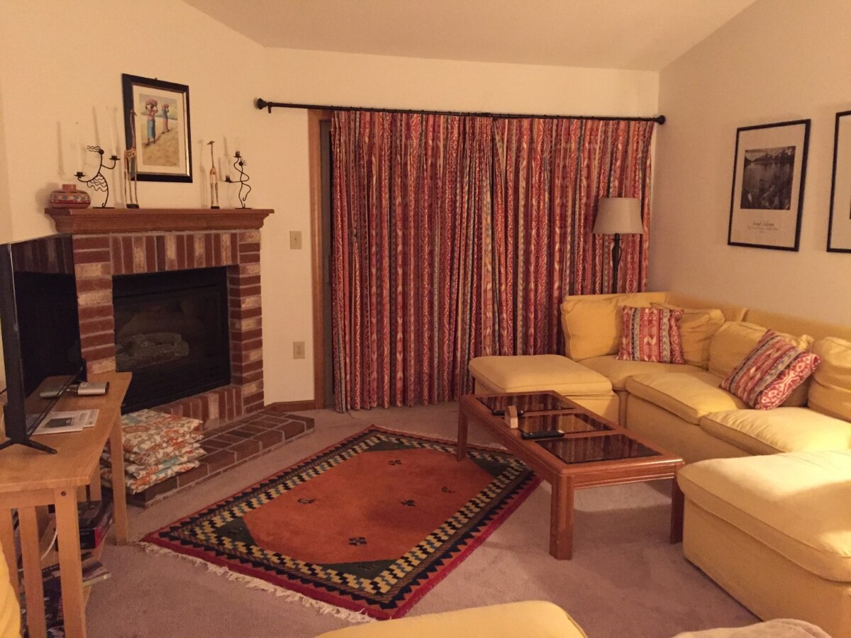 Lokalni dogodki! Na voljo so mesečne/sezonske cene! Uživajte v glasbi v živo, družinskih dogodkih v Settlers Greenu in akvariju Living Shores ter sezonskih zabavah v North Conwayu, Conwayu, Jacksonu in Glenu. Pobegnite v naše prijetno stanovanje v nordijski vasici, ki je idealno zatočišče za družine ali prijatelje. Ta dvonadstropno prenočišče z dvema spalnicama in dvema kopalnicama ponuja osebnost in udobje, vključno s spiralnim stopniščem, prijetnim kaminom in zasebno teraso z osupljivim razgledom na gorovje White Mountains. Na voljo so mesečne in sezonske cene.