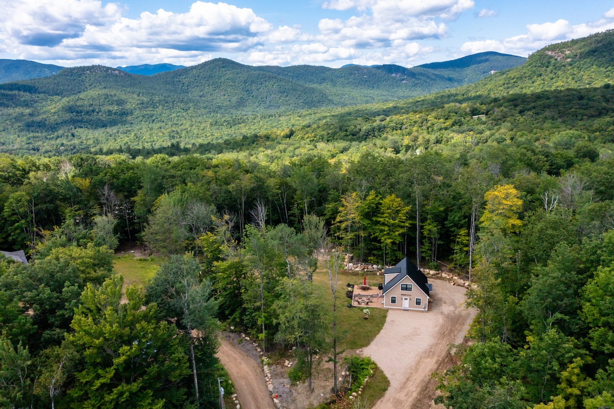 Pravljična koča v Hallmark-movieju. Brunarica s sodobnim udobjem, 9 postelj, medvedom. Zidarski ognjišče, zasebna plaža, 32 hektarjev prostoživečih živali. Poti do mokrišč, sprehodi ob reki. Smučanje, ribolov, pohodništvo, rečne cevi. Udoben štedilnik na drva, masažna kad ter sezonsko drsanje in odbojka. Pogled na smučišče West Mountain Uživajte na terasi in opazujte plešastega orla, ki leti mimo. Opažanja losov pri vhodnih vratih. Počutite se stran od vsega v Bretton Woodsu. Psi so dobrodošli!