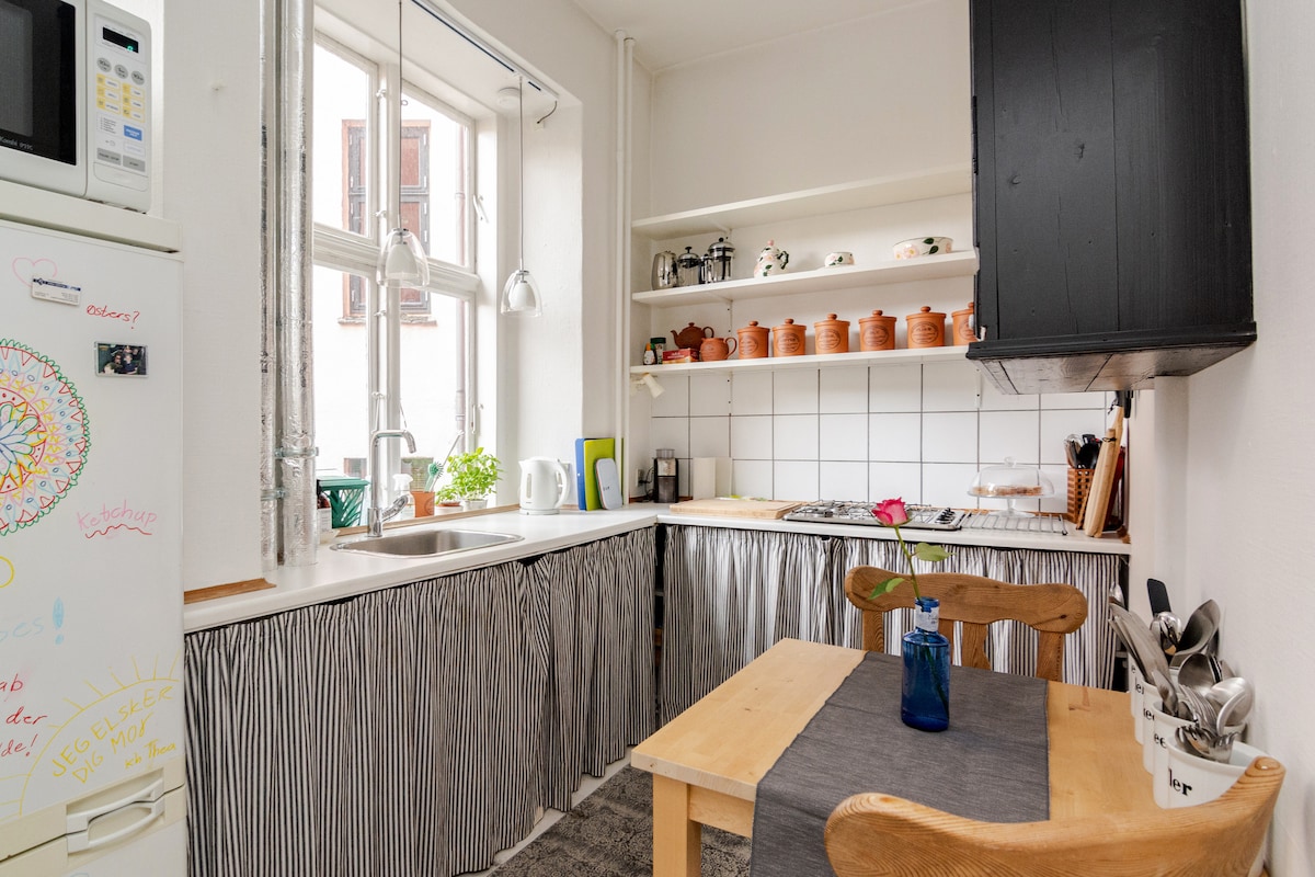 The apartment is in one of the very best locations in Copenhagen, a few minutes' walk from Kongens Nytorv, Strøget, Nyhavn and Kongens Have. Right outside the door you will find a multitude of small local shops, cozy cafes, supermarkets, restaurants and eateries with tasty menus and street food. The apartment is 68 m2 and has just been renovated. It offers two bedrooms, a kitchen and a living room with a balcony. Every day at 13:00 The King's Life Guard march past just below the balcony.