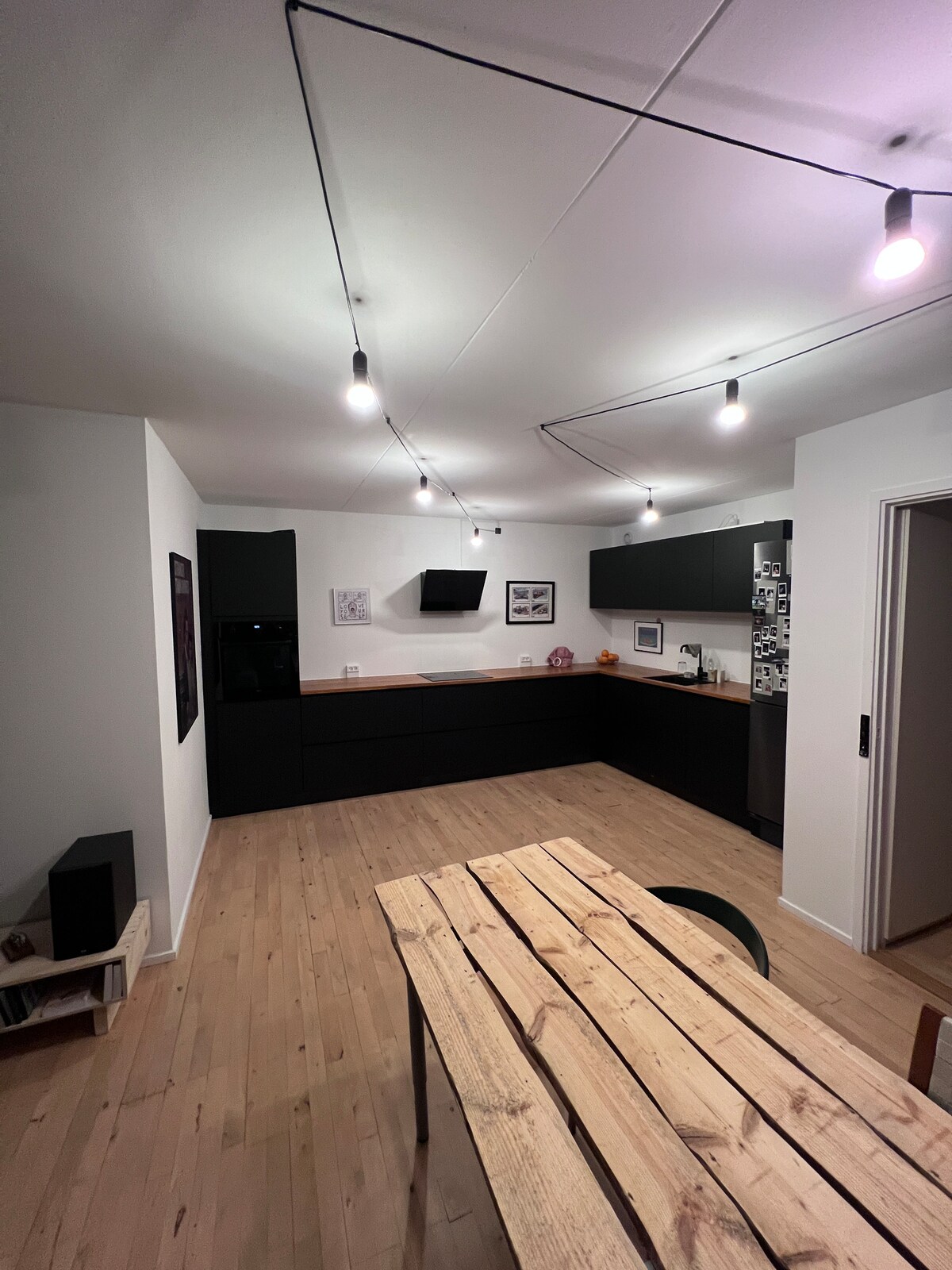 To odlično stanovanje se nahaja v zgornjem nadstropju z dvigalom in lepim balkonom. Dnevna soba je dobila izpostavljeno betonsko steno in odprto kuhinjo/jedilnico/dnevno sobo. Ni izvirne kabelske televizije, vendar je na napravi na voljo projektor s povezanim Apple TV-jem, ki vključuje Netflix, DR TV, TV 2, HBO in več kot 100 filmov. Na sprednji ali zadnji strani stavbe je zasebno parkirišče z ograjo. Lokalno območje je zelo visoko in ponuja ogromno udobnih trgovin in kavarn.