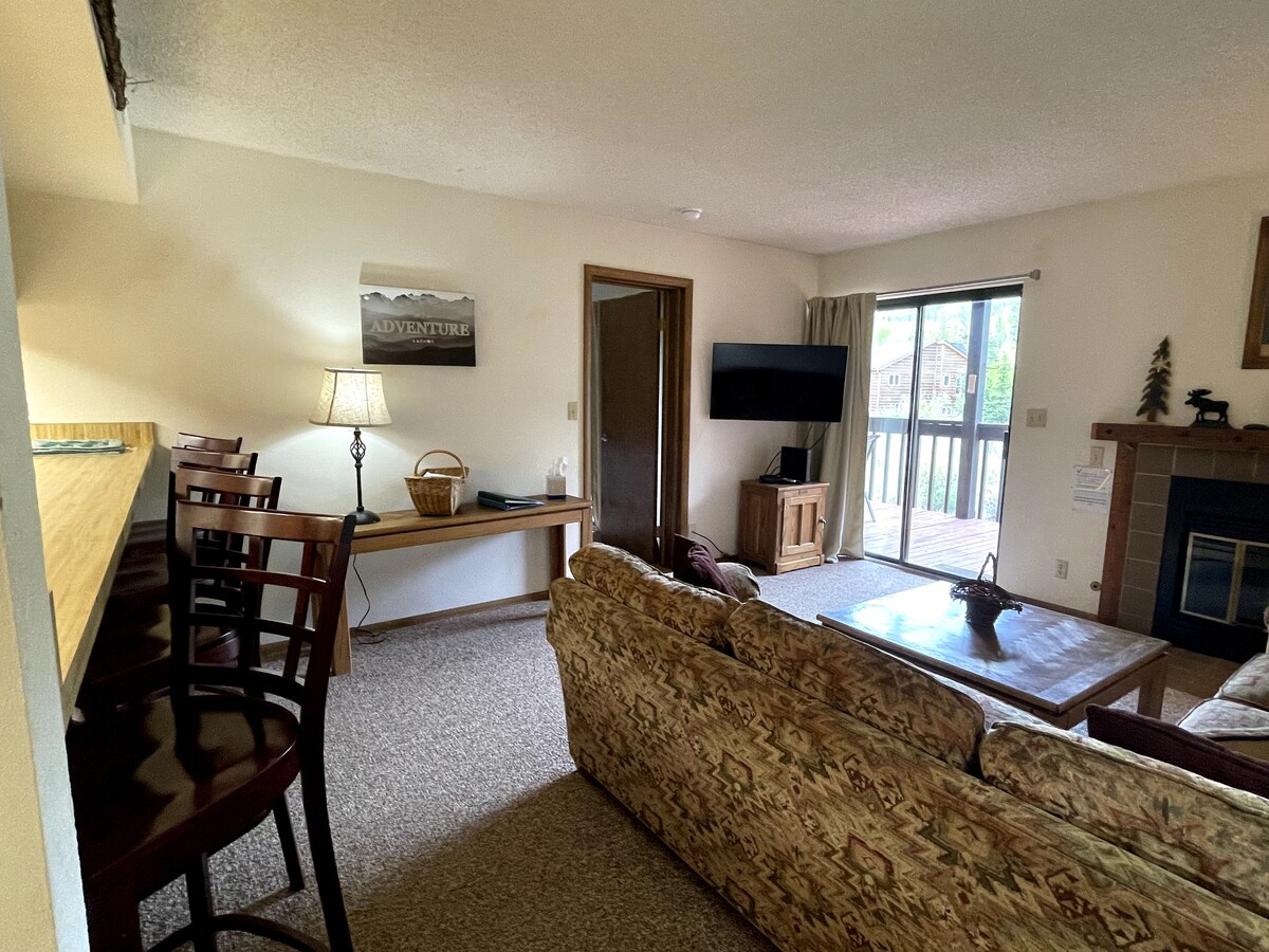 Pridite in uživajte v oddihu v našem čudovitem enosobnem stanovanju v osrčju vasi Copper Mountain 's Center Village. ČUDOVIT razgled na gore in ribnik, kjer lahko uživate v smučanju, golfu, restavracijah, kavarnah, nakupovanju in še več. V prenočišču sta na voljo popolnoma opremljena kuhinja in posteljnina. Udoben kamniti kamin je osrednja točka dnevne sobe z raztegljivim kavčem z zakonsko posteljo. Wi-Fi ima povprečno hitrost prenosa 42,5 MB/S Dovoljenje za kratkotrajni zakup #STR21-02196 Največja zasedenost: 4 parkirna mesta: 1