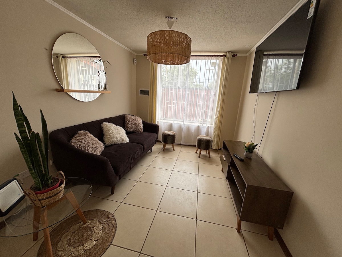 Pozdravljeni! Moja hiša se nahaja v bližini letališča, supermarketa Jumbo in dostopa do poti do doline Elqui. 55 m, 2 spalnici, kuhinja, dnevna soba, 1 kopalnica. Wi-Fi. Smart TV. Hiša je v najemu, ne nahaja se v bližini obale, tukaj pa boste našli tišino in mir podnevi in ponoči. KAJENJE NI DOVOLJENO, HIŠNI LJUBLJENČKI NISO DOVOLJENI. 1 dodaten gost je dovoljen x dodaten znesek x nočitev (obdelan je futon)
