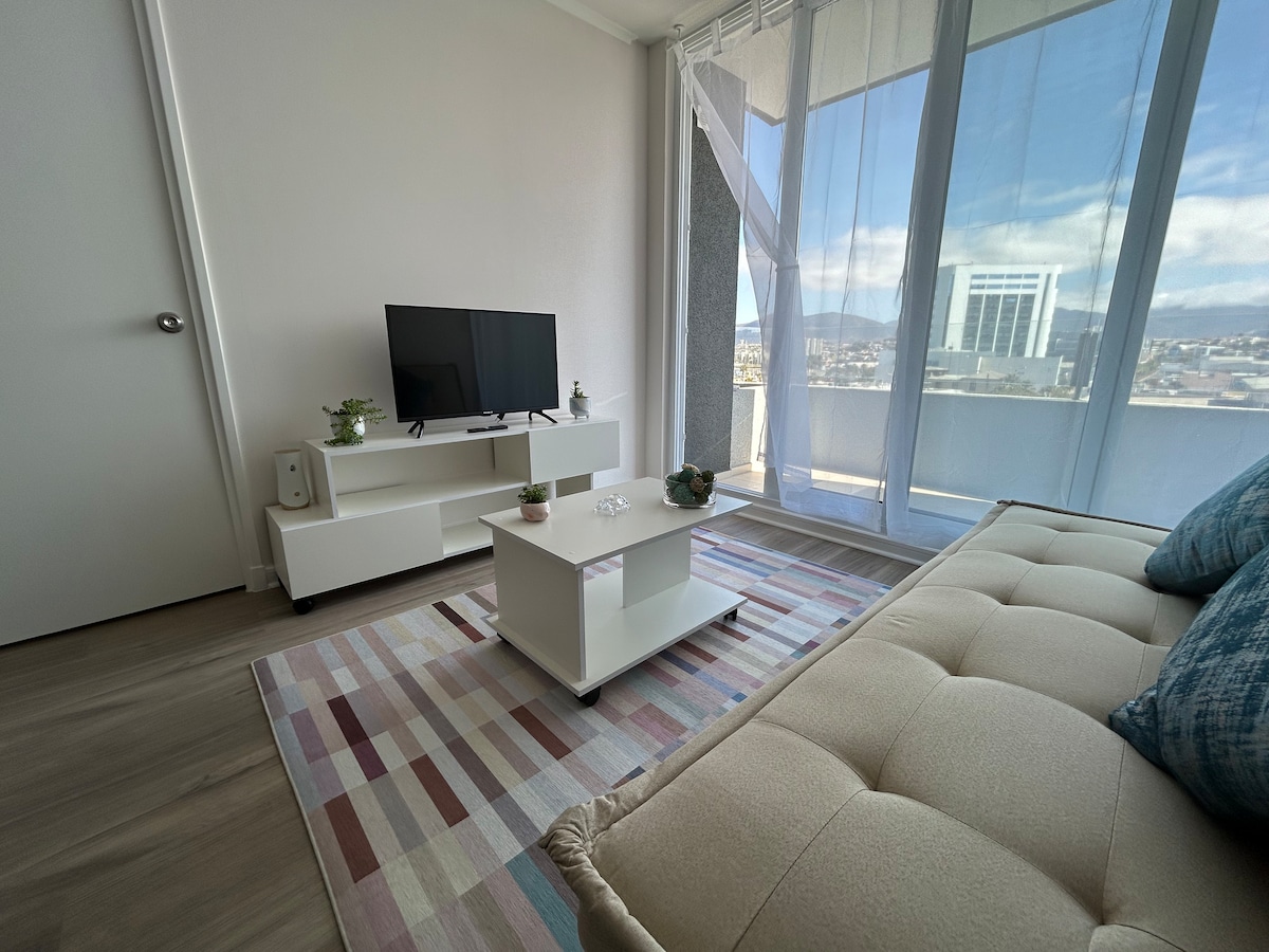 Udobno stanovanje v 19. nadstropju s panoramskim razgledom na plažo Coquimbo, križ tretjega tisočletja in celotno mesto. S terase lahko uživate v čarobnih sončnih zahodih in ponoči osvetljenem mestu. Idealno za pare, prijatelje ali popotnike, ki potujejo sami in iščejo mir ter neposredno povezavo z zalivom. Stavba ponuja zasebno parkirišče, pralnico, telovadnico, bazen (odprt 30. novembra) in žar na 20. nadstropju s panoramskim razgledom na čudovit zaliv.