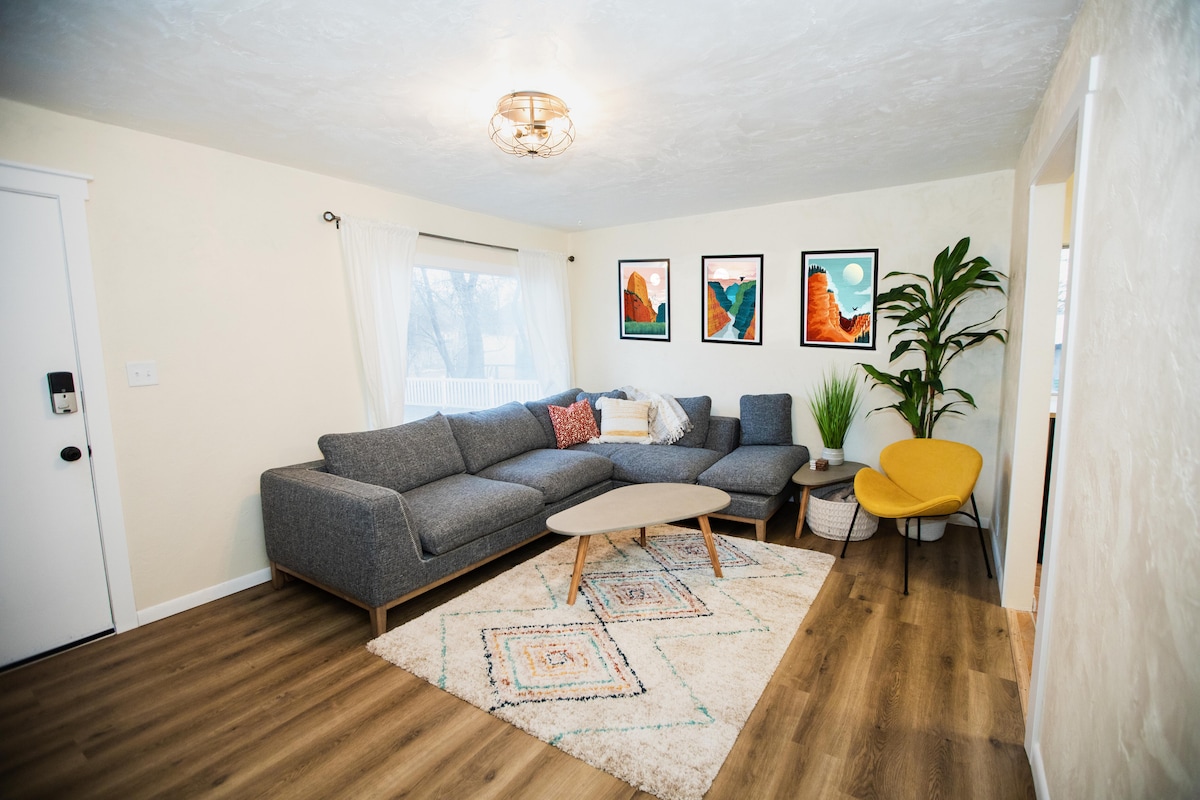Sprostite svoj pustolovski duh v prenočišču Timber + Tin H! Ta oaza 2BR/2BA je odlična odskočna deska za raziskovanje osupljivih pokrajin Kanaba. Sprostite se in opazujte zvezde na zasebni terasi na strehi, nato pa se potopite v skupni bazen, uživajte v masažni kadi in uživajte v filmu v obnovljenem skednju. Kanab je pustolovsko središče na prostem v južni Uti, zaradi česar je to popolno prenočišče v bližini narodnih parkov Zion, Bryce in Grand Canyon. Pripravite se na čudovit čas, ki ga ne boste kmalu pozabili.