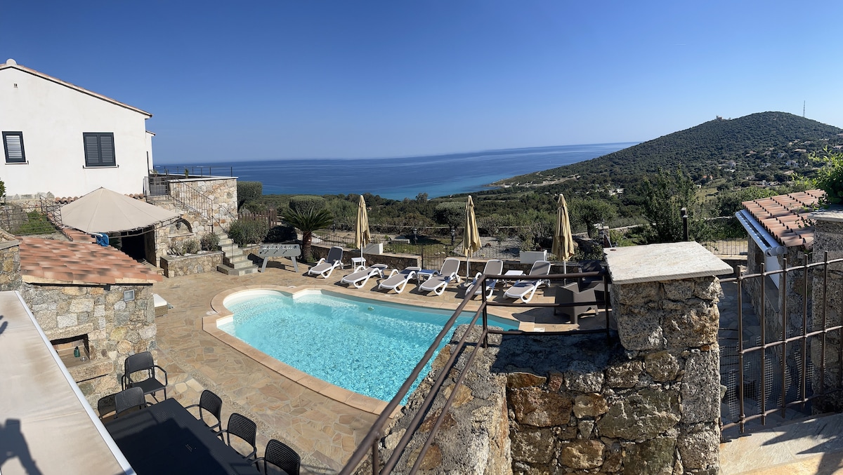Hiša s panoramskim pogledom na morje, bazen, plaža 200 m stran