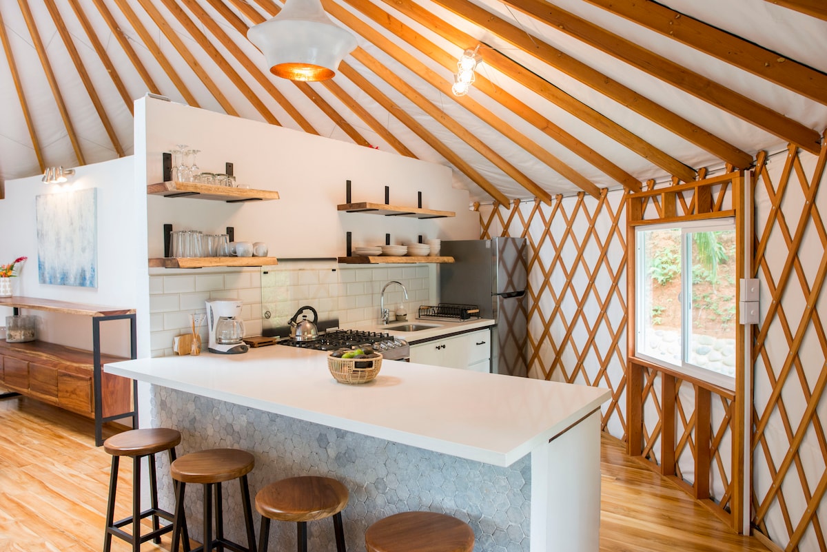 Voted by Forbes as the best Airbnb in Costa Rica for romance in 2024. The Perch is an oceanfront luxury yurt with one of the most beautiful views you can find in the country. It is a low impact build on the environment, mixing all the comforts and amenities of a modern home, while at the same time bringing you as close to nature as possible.The space was designed for couples in mind. It’s the perfect place to disappear for few nights and leave feeling completely rejuvenated. Truly one of a kind.