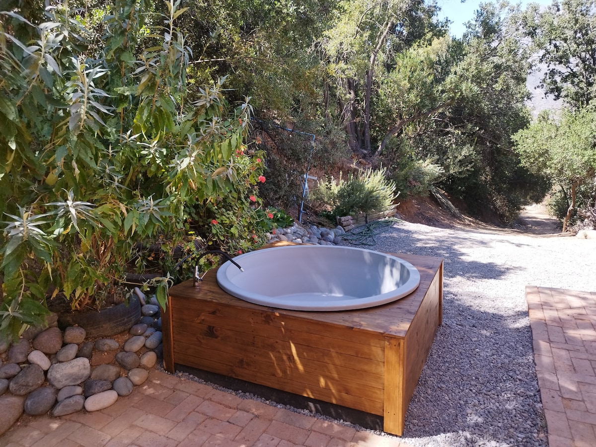 Oglejte si tudi El Arca Naranja, ekološka koča! Cabaña za 2 osebi, 20 min od Santiaga, obdana z gorami, drevesi in divjimi živalmi. Kuhinja je popolnoma opremljena, štedilnik na gaz za kuhanje, majhna pečica, hladilnik, v kopalnici, vroča prha in kamin. Treking poti, ulično in gorsko kolo, majhna reka za plavanje, vrtovi z aromatičnimi rastlinami in začimbami, viseča mreža, žar, v bližini smučarskih centrov in gorske pokrajine, lokalna ročno izdelana. Razpoložljiv konec tedna in konec tedna Popust za daljše bivanje