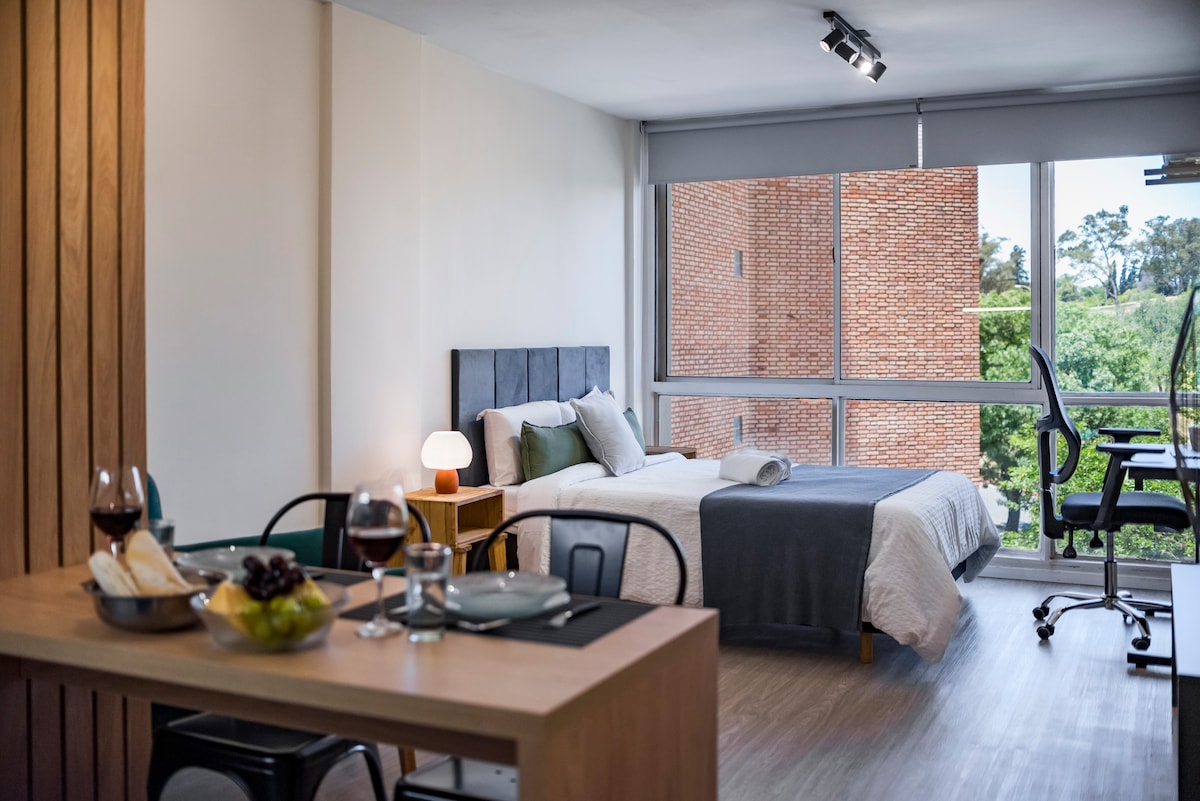 Idealno za daljša bivanja: popolnoma novo stanovanje, sodobno in popolnoma opremljeno, ki se nahaja v New Cordobi. Prostorna, svetla in funkcionalna, z novim pohištvom, polno kuhinjo, pralnico v stavbi in prostorom za shranjevanje. Stopnice od terase Olmos, Av. Yrigoyen z enostavnim dostopom do središča, univerz in parkov. Počutite se kot doma, medtem ko doživite Cordobo z udobjem, slogom in vsem, kar je na dosegu roke.