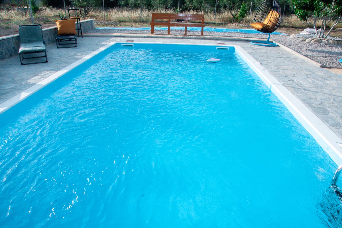 Sprostite se v tem mirnem in elegantnem prostoru. Podeželska hiša v celoti prenovljena, 100 kvadratnih metrov s 267 kvadratnimi metri balkoni in vrtom, na robu čudovite in mirne vasi Mulki, 3,5 km od morja in čudovitih plaž ter 1,8 km od arheološkega najdišča in muzeja starodavnega Sikyona. To bivališče je kot nalašč za družine in pare. 2 popolnoma opremljeni kuhinji, 2 popolnoma opremljeni kopalnici, 2 enojni postelji za dve osebi, 2 enojni postelji in raztegljiv kavč za dve osebi, hiter Wi-Fi, Smart TV..