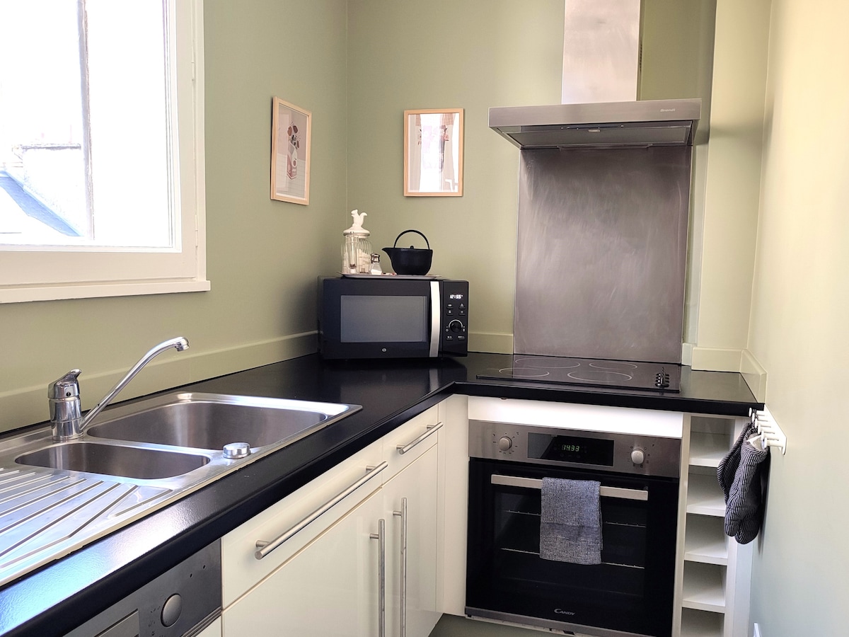 V zgodovinskem središču Caena, poleg mestne hiše in moške opatije, 65m2, v celoti prenovljeno staro stanovanje, svetlo pritličje na dvorišču in vrtu, vključno s popolnoma opremljeno odprto kuhinjo, dnevna soba s kavčem, dvoposteljna soba, kopalnica s tušem in kadjo. Južna terasa z razgledom na zaprt in sončen vrt, možno parkiranje na dvorišču. Televizija, Wi-Fi, likalna deska in likalnik, sušilnik za lase, brisače in posteljnina na voljo.