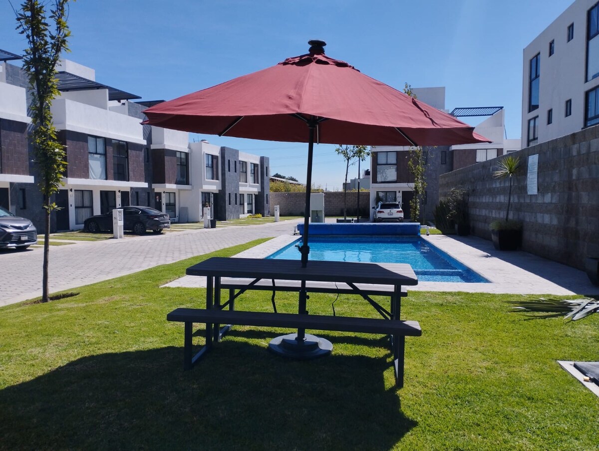 Odpeljite vso družino v to fantastično bivališče, kjer lahko uživate v našem ekskluzivnem dvoposteljnem stanovanju s sodobnim dizajnom. Ta edinstven prostor ponuja razkošno doživetje. Sprostite se na zelenih površinah in uživajte v okolju. Poleg tega imamo zasebno parkirišče, ki zagotavlja udobje in varnost med bivanjem. Nahaja se 5 minut od čarovnije Val 'Quirica, 20 minut od Cholule in 12 minut od Aerassador de Puebla z avtomobilom.