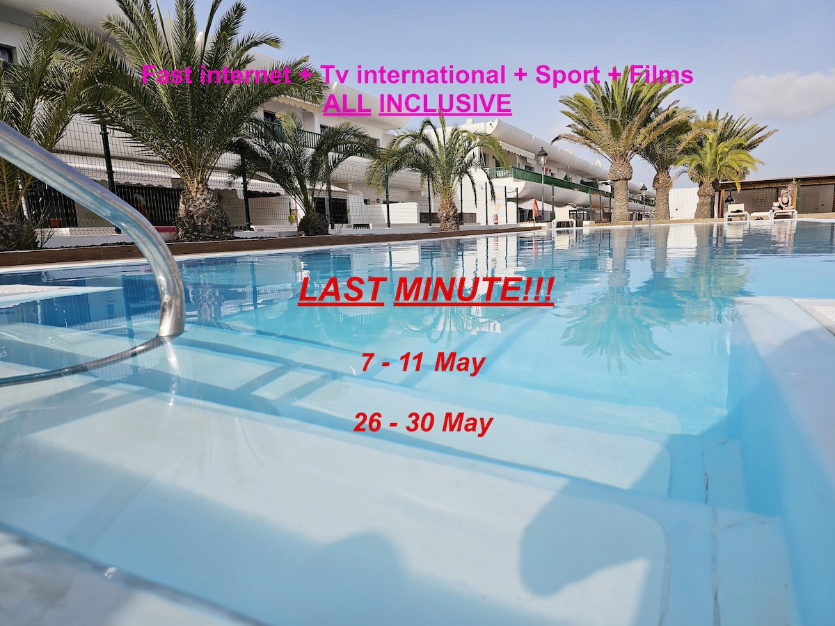 Apartma za ekskluzivno uporabo se nahaja v Corralejo znotraj stanovanjskega kompleksa z bazenom in solarijem. Meji na "Parque Natural de Corralejo” in je približno 400 m oddaljena od znamenitih “Grandes Playas” in “Dunas de Corralejo”. Namestitev je sestavljena iz spalnice, dnevne sobe s kuhinjsko nišo, kopalnice in velike terase. Super hitra WI-FI internetna povezava in posteljnina sta vključeni v ceno najema. Brezplačno parkiranje na voljo.