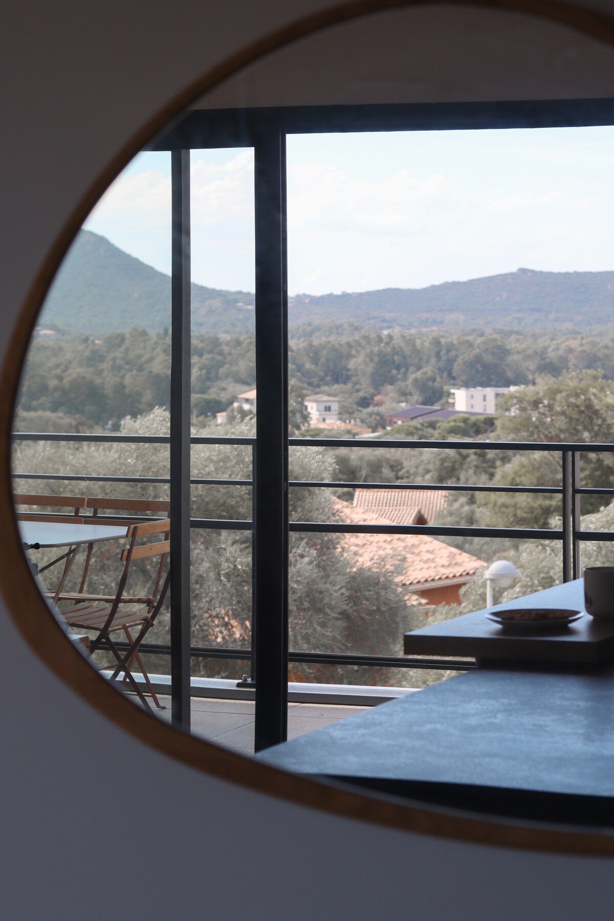 Prisrčno vas bomo sprejeli v velikem opremljenem prenočišču T2, obrnjenem proti jugu, v zgornjem nadstropju, s pogledom na gore, s pogledom na morje v čudoviti rezidenci v bližini opreme, letališča, plaž Porticcio (tri minute vožnje). Ta nastanitev s hotelskimi storitvami, posteljnino (rjuhe, brisače itd.) in profesionalno posteljnino. Kuhate lahko obroke in uživate na 17 m2 veliki terasi, opremljeni za sprostitev!