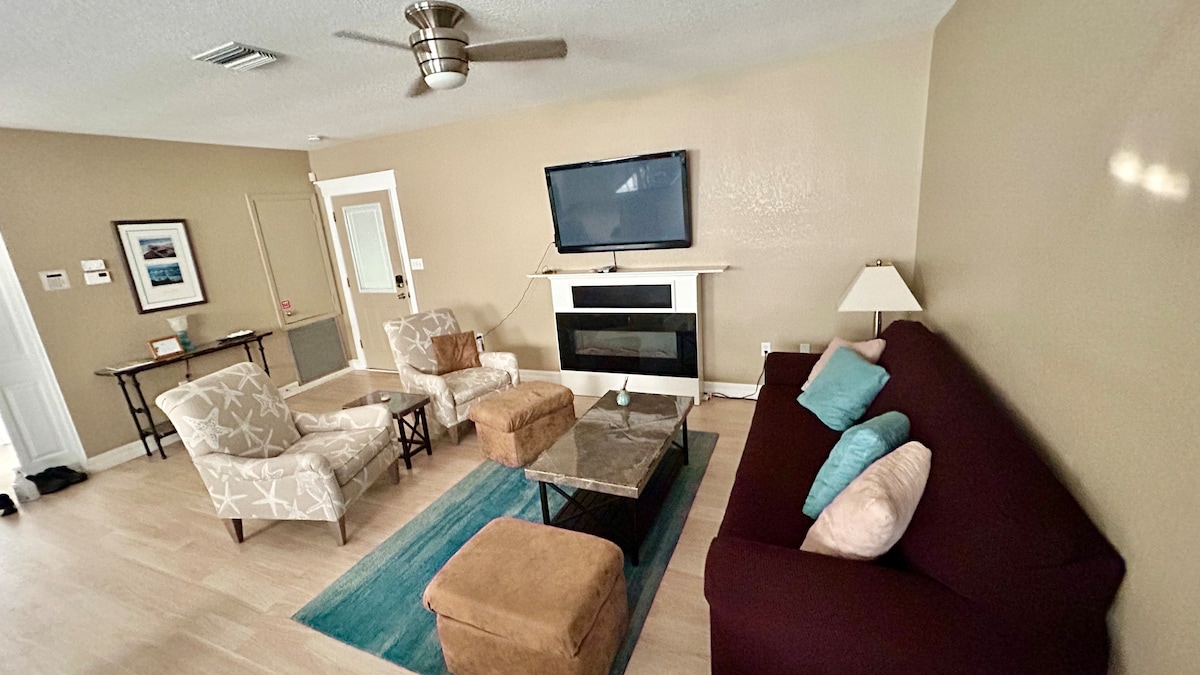 Sea Breeze Retreat A je vaš drugi dom! Eleganten, popolnoma posodobljen očarljiv oddih z 2 spalnicama in 2 kopalnicama ponuja popolno mešanico udobja in obalnega šarma. Z živahno dekoracijo, udobno zakonsko posteljo in sproščujočo zunanjo teraso. Zabavajte se z vso družino v tem elegantnem bivališču. Čudovita plaža Bradenton je oddaljena 5 minut! Enostaven dostop s kolesom (16 min) ali najem avtomobila za golf in pozabi na vožnjo! Občutite pravi floridski duh!