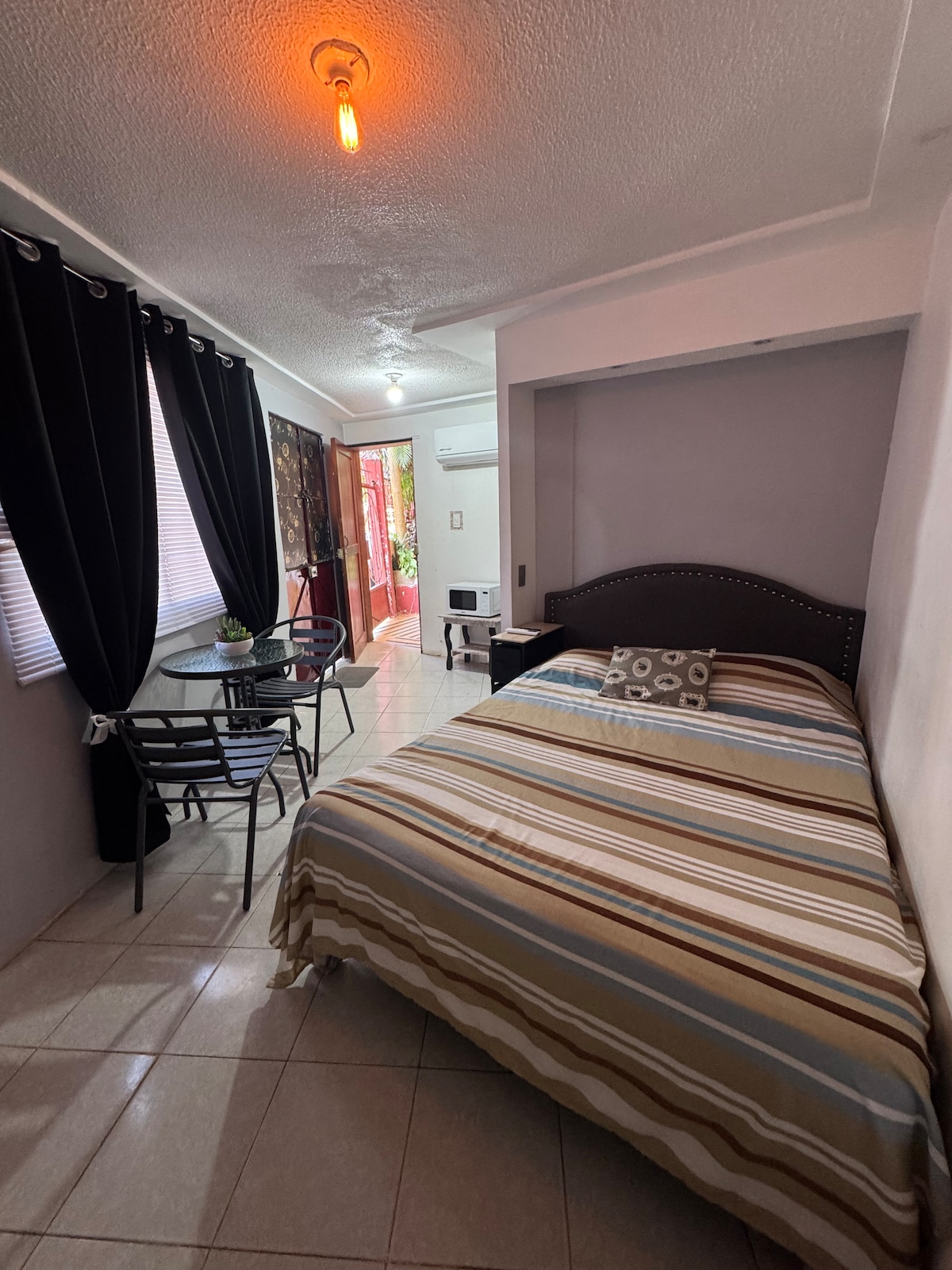 Bivajte v osrčju Acayucana v praktičnem in udobnem mini stanovanju, ki je idealno za poslovna potovanja ali počitek. Za vaše udobje uživajte v udobni zakonski postelji, televizorju, klimatski napravi in ventilatorju. Kuhinja je opremljena z mini hladilnikom, aparatom za kavo, mizo in osnovnimi pripomočki ter foteljem s stransko mizico, omaro in zasebno kopalnico z ogledalom. Zaradi svoje osrednje lokacije ste blizu trgovin, restavracij in prevoza, zaradi česar je vaše bivanje še bolj praktično in prijetno.