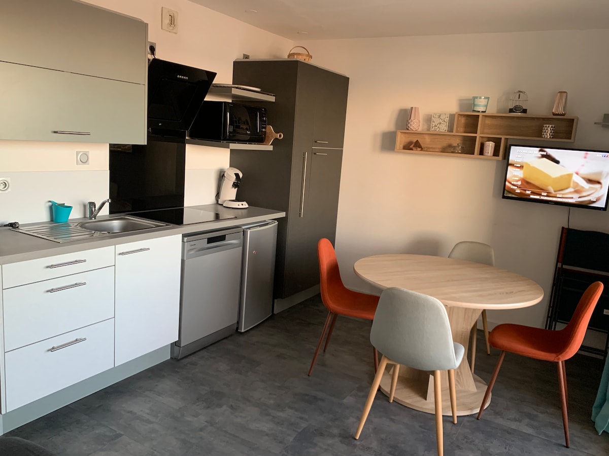 Uživajte v izjemni lokaciji, ki gleda na Atlantik. S pogledom na jugozahod z zaprto teraso prevladujete na plaži Sainte Marguerite de Pornichet s finim in dobro zaščitenim peskom Studio se nahaja v drugem nadstropju z dvigalnim dvigalom Vključuje vhod, kopalnico s kadjo in nečimrnostjo ter pralni stroj. Ločeno stranišče, glavna soba s kuhinjsko nišo (indukcijska kuhalna plošča - napa - hladilnik z zamrzovalnikom - pečica - mikrovalovna pečica - aparat za kavo - TV) pograd in raztegljiv kavč