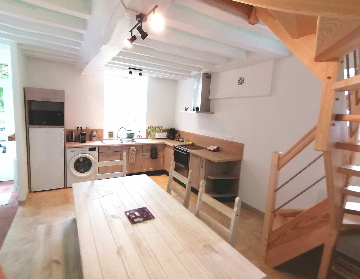 Profitez du charme de cet ancien moulin restauré dans un cadre calme et verdoyant. Idéal pour 1 séjour en famille ou pour le travail. Rez-de-chaussée: cuisine et salon entièrement équipés. Étage: 1 chambre cocooning avec 1 grand lit double, draps et oreillers inclus. A disposition : 1 lit parapluie et 1 chaise haute pour 1 bébé ou 1 jeune enfant. A l’étage: SDB avec serviettes de bain et 1 sèche cheveux, 1 douche ainsi que des WC. Parking privé et gratuit. Animaux non autorisés