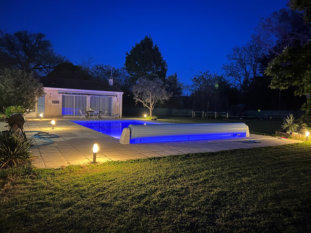Longère Charentaise v zelenem okolju. 170 m2, 4 spalnice, otroška igralnica, bar /pikado - Zasebni bazen 6x3 ogrevan (od maja do oktobra) 3000 M2 gozdnatega vrta za tišino . Na lokaciji je mini košarkarsko igrišče, igrišče za petanque, nogomet, badminton ... Samo 20 minut od plaž, 25 min od Royana in manj kot 1 uro od več drugih turističnih zanimivosti ( Saintes, Ile d'Oléron, Angoulême, La Rochelle, Bordeaux, Soulac sur mer...)