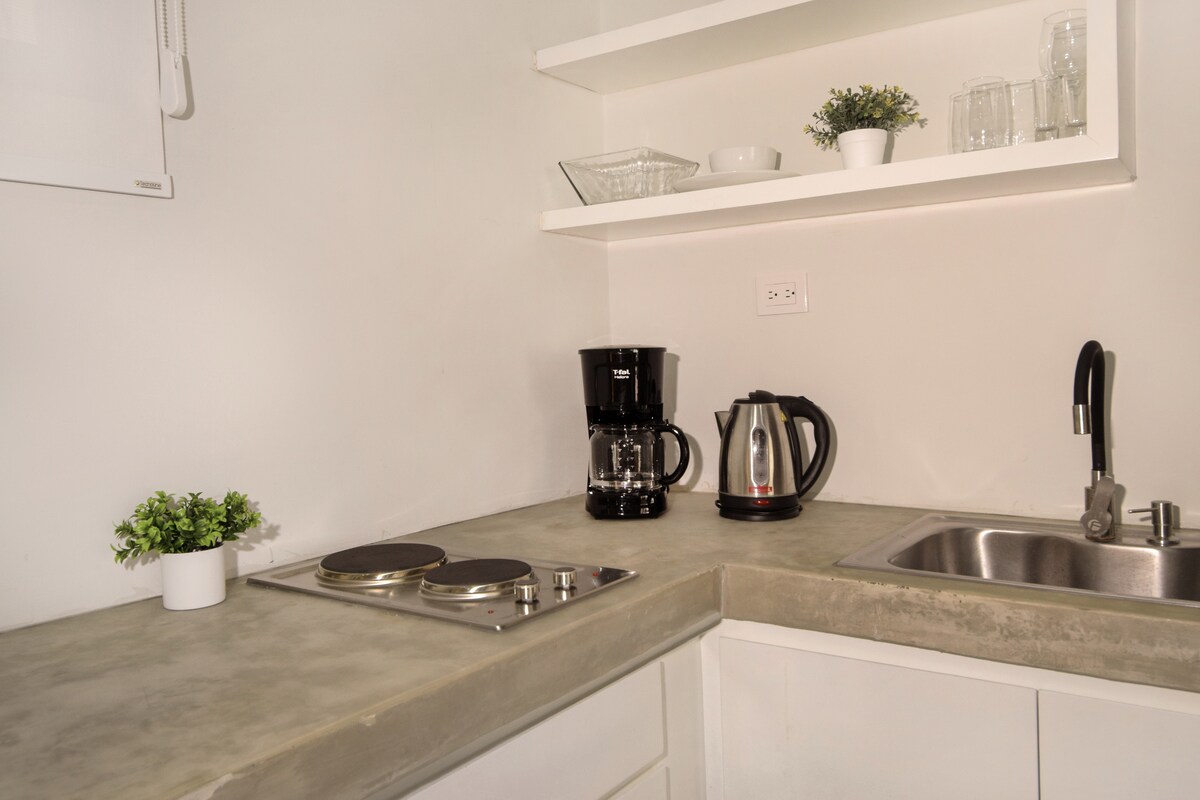 Idealno za ljubitelje plaže in narave, ki iščejo miren oddih! Ena najboljših zasebnih lokacij na otoku z neposrednim dostopom do peščene plaže, kjer lahko uživate v vodnih športih ali pa se preprosto sprostite na obali. Samo 5 minut vožnje do središča mesta Cozumel. Na novo prenovljena suita ima vse, kar potrebujete za udobno bivanje, vključno z: odprto zunanjo teraso, veliko studio, zasebno kopalnico, klimatsko napravo, pametno televizijo, Wi-Fi in majhno kuhinjo, opremljeno z novimi napravami.