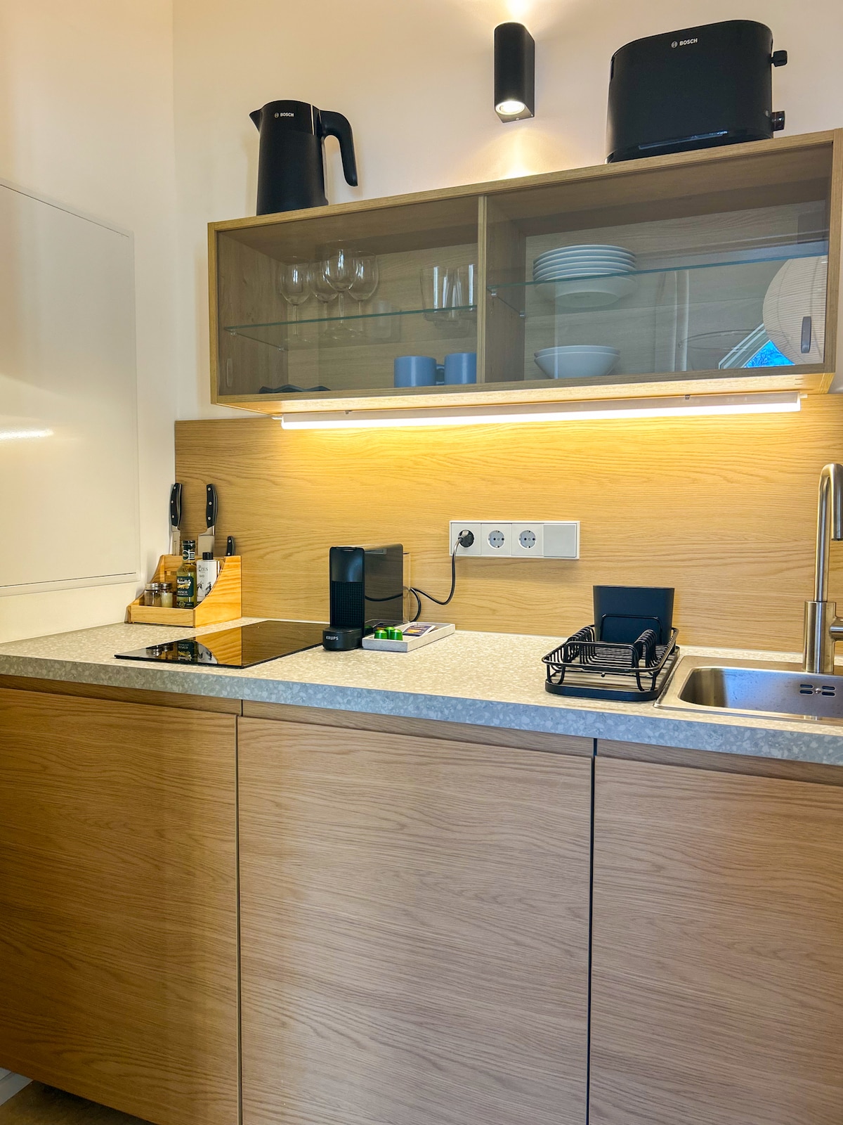 To elegantno stanovanje ponuja idealno kombinacijo udobja in centralne lokacije. Do središča mesta se lahko sprehodite v samo 15 minutah, železniška postaja pa je oddaljena 2 minuti. Zasebno parkirišče je neposredno del namestitve. Stalno delovno mesto s hitro internetno povezavo omogoča produktivno delo. Kuhinja je v celoti opremljena, postelja z vzmetnico z vzmetnim dnom (širine 1,40 m) in pametna televizija (Netflix, DAZN, YouTube) pa poskrbijo za sprostitev. Osnovna oprema, kot je posteljno perilo, je vključena.