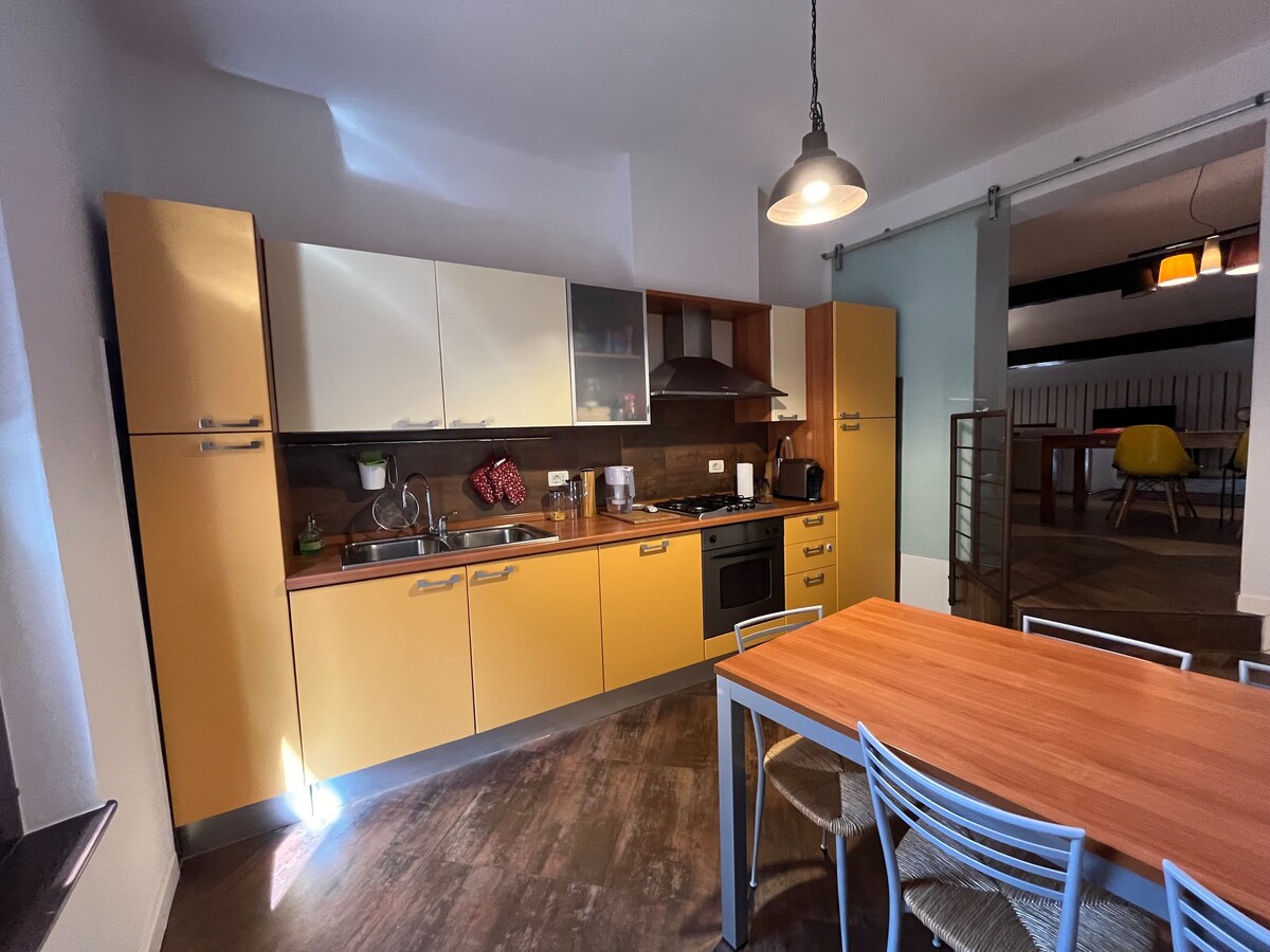 Predelano stanovanje se nahaja v središču mesta, v bližini zgodovinskega trga Piazza Garibaldi, utripajočega srca Parme. Podstrešno stanovanje je zasnoval znani arhitekt, ki je ta prostor naredil edinstven. Dnevni prostor z veliko in svetlo dnevno sobo gleda na strehe Parme z ekskluzivno teraso. Za dokončanje čudovite kuhinje po meri. Sodobna glavna spalnica z garderobno omaro in kopalnico z masažno kadjo za sprostitev po hladnem zimskem dnevu.
