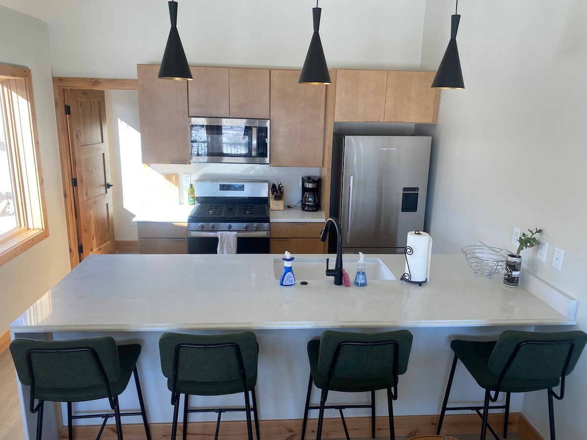 Zaradi idealne lokacije in v celoti založenega je ta mestni dom popoln bazni kamp za vaše CB pustolovščine. Udobje in oprema sta kot doma. Priročnost, ki si jo želite, vendar v mirnem delu mesta. Nekaj minut hoje do vsega... trgovine v središču mesta, restavracije, trgovina z živili, avtobusna postaja, kino in 1/2 ulice do mestnega parka, kjer potekajo zloglasni koncerti Alpenglow, in nekaj minut do nordijskih, pohodniških in kolesarskih poti ter 3 parkov. 3 spalnice in 2,5 kopalnice, ki udobno spijo do 9.