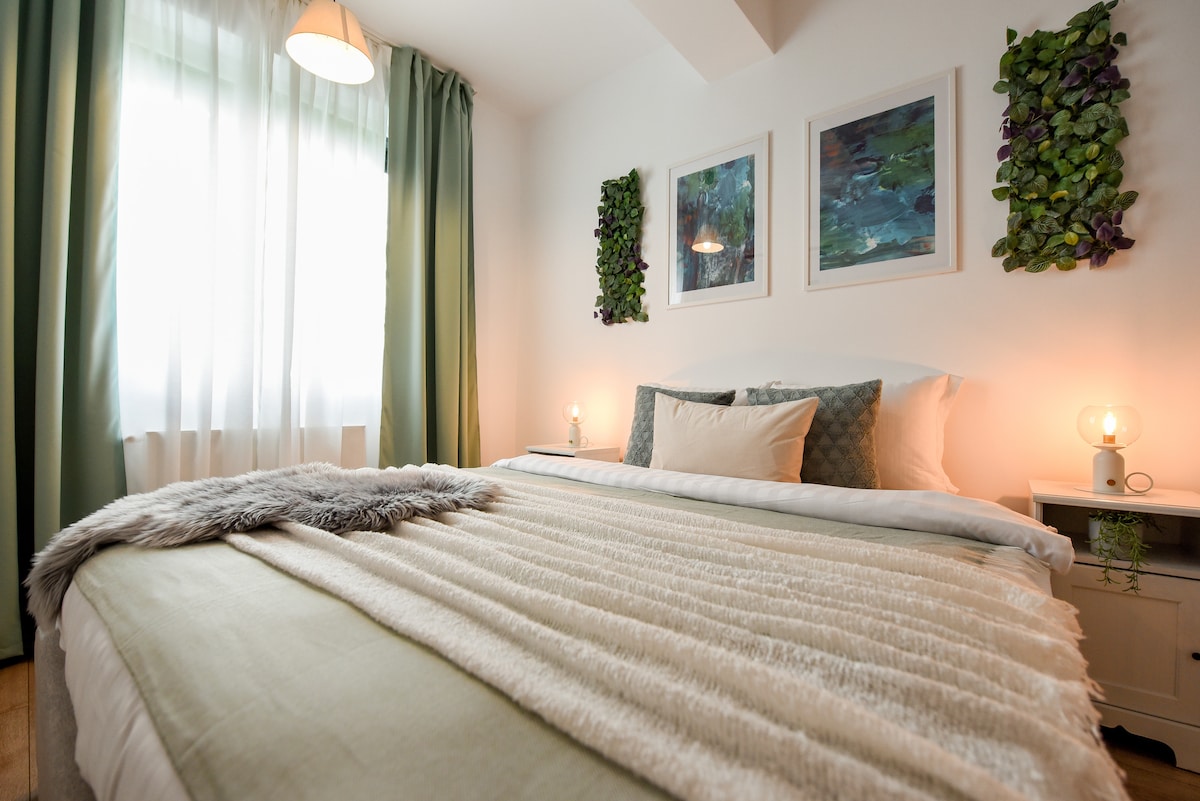 High-class, intimate apartment situated at 2nd level of a newly built villa, having 2 large bedrooms, 1 child/baby bedroom having 1 crib+1 regular bed, 2 bathrooms, kitchen, WiFi, access to computer and printer. Can accomodate up to 6adults (or combination adult/kids) + 1 crib for a baby. COVID 19: The entire property complies with the necessary cleaning and disinfection rules during the Covid19 pandemic. All surfaces are disinfected with professional solutions and UV rays.
