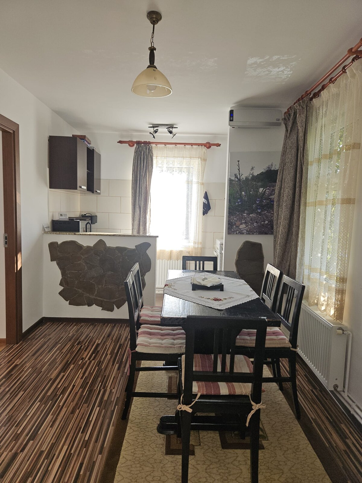 Dobrodošli v našem bed and breakfastu v Rasnovu, zatočišču elegance in udobja! Naša nastanitev izstopa po dveh prostornih stanovanjih, ki so okusno urejena in posebna pozornost do vsake podrobnosti. Dvorišče in prostor za žar si delita s stanovanjem št. 2. Savna in Ciubar se lahko uporabljata samo pri rezervaciji, odvisno od razpoložljivosti. Če jih želite uporabiti, nas o tem obvestite vsaj 24 ur vnaprej. Cene na dan Savna 300 lei. Ciubar 400 lei.