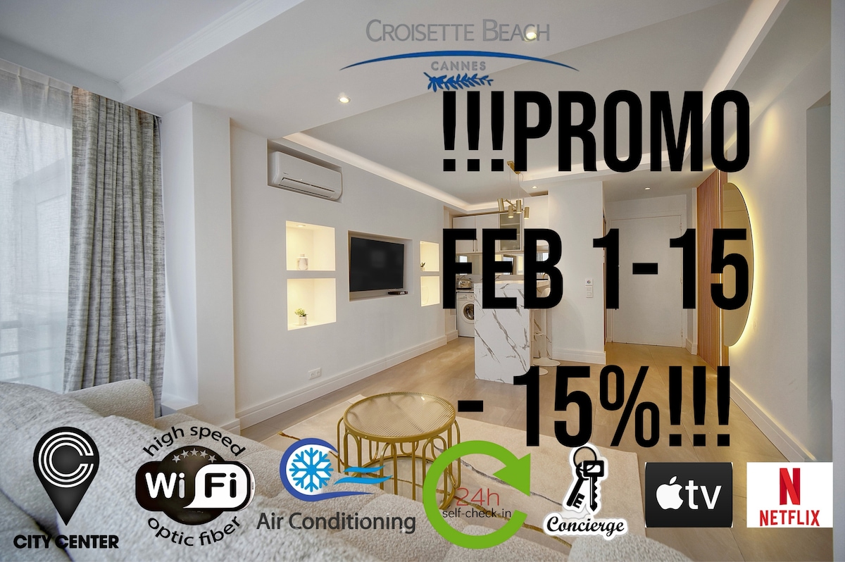 Stanovanje se nahaja v ulici Rue d 'Antibes, v bližini Cartona in Velikega hotela. V celoti ga je prenovil notranji oblikovalec ter ponuja udobno in udobno notranjost. Nahajali se boste 2 minuti hoje od peščenih plaž v La Croisette in 10 minut od festivala Palais des Festivals, v bližini železniške postaje TGV in 20 minut z avtomobilom od letališča Nice, parkirišča v neposredni bližini stavbe, sončnega balkona.