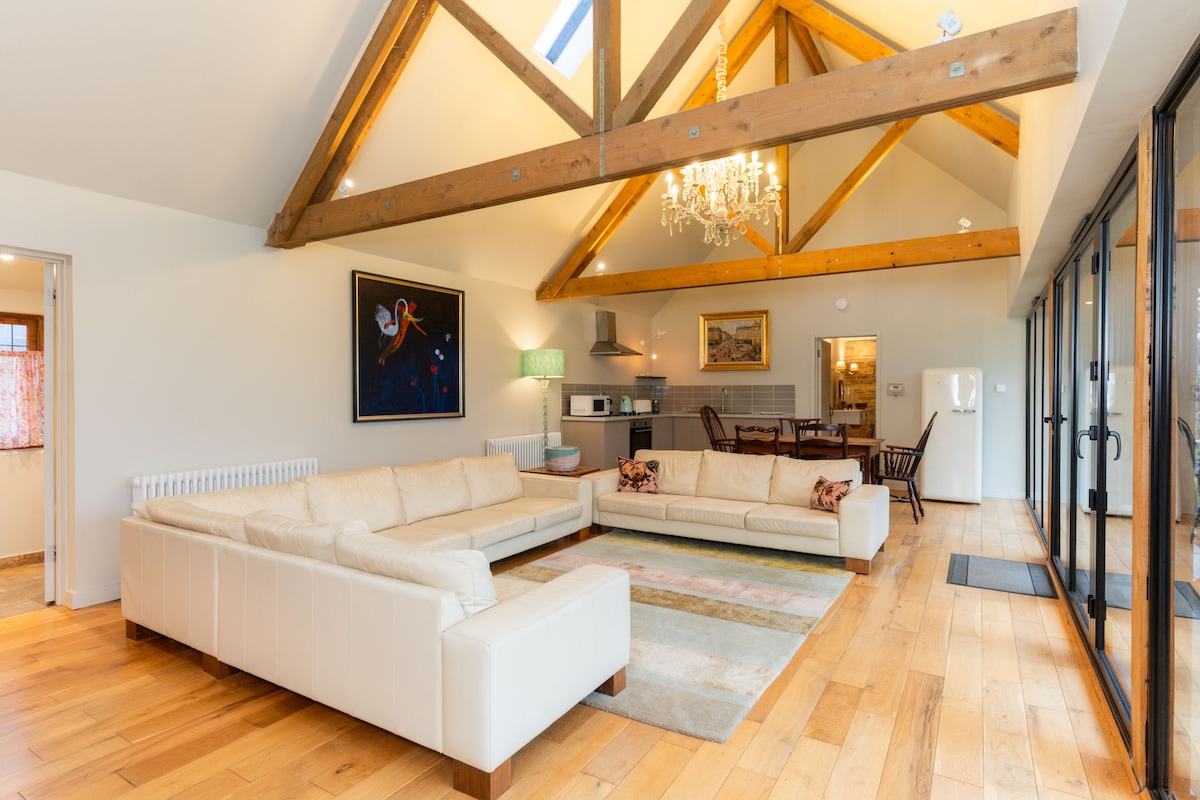 The Coach House is set in the grounds of Grade II listed Erlands House, on the edge of the pretty village of Crondall. Mirno okolje s čudovitimi razgledi, sprehodi in pivnicami! 1 uro od Londona – idealno za družine, prijatelje ali pare. 2 spalnici s posteljama velikosti King (eno posteljo je mogoče razdeliti na 2 enojni postelji) in enojna postelja na podestu. Odprta kuhinja, ki se odpira v obokano sprejemno/jedilnico z zložljivimi vrati, ki vodijo na sončno teraso. 2 gostilni, kavarna v vinogradu, vaška trgovina in trgovina z živili M&S so oddaljeni največ 1,6 km hoje po podeželskih poteh.