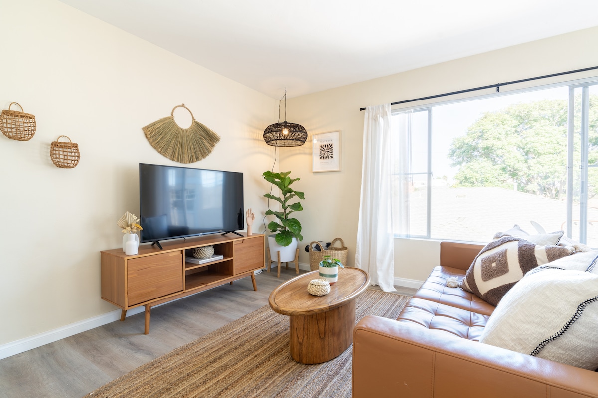 Doživite udobje in slog v tej očarljivi zgornji enoti! Vabljiv prostor, poln sončne svetlobe z mehkimi zemeljskimi toni in elegantno boho dekoracijo, ima zračno dnevno sobo, ki je kot nalašč za sprostitev. Kuhajte v popolnoma opremljeni kuhinji in uživajte v obrokih v udobni jedilnici. Z dvema čudovitima spalnicama se boste počutili kot doma. To elegantno zatočišče je idealno za družinska potovanja ali izlete prijateljev le nekaj minut stran od osupljivih plaž in znamenitosti San Diega. Rezervirajte zdaj za nepozabno bivanje.