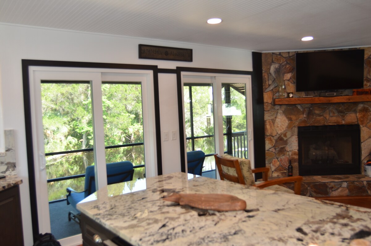 NA KRISTAL RIVERJU, PRENOČIŠČE OB OBALI. Zasebni plavajoči 20' x 8' pomol s sedeži, vključenimi kajaki, parkirišče za prikolice, naravno enostavno spuščanje kajaka, veliko dvorišče s senco in dvema spalnicama, dve na novo prenovljeni kopalnici, spalni kavč za dodatne goste. *Uporaba kajakov, pomola, ognjišča in vseh rekreacijskih dejavnosti je na lastno odgovornost uporabnikov, saj je to naravna pokrajina, kot tudi vsa rečna prenočišča, uporaba kode za vstop v namestitev pa je potrjena.