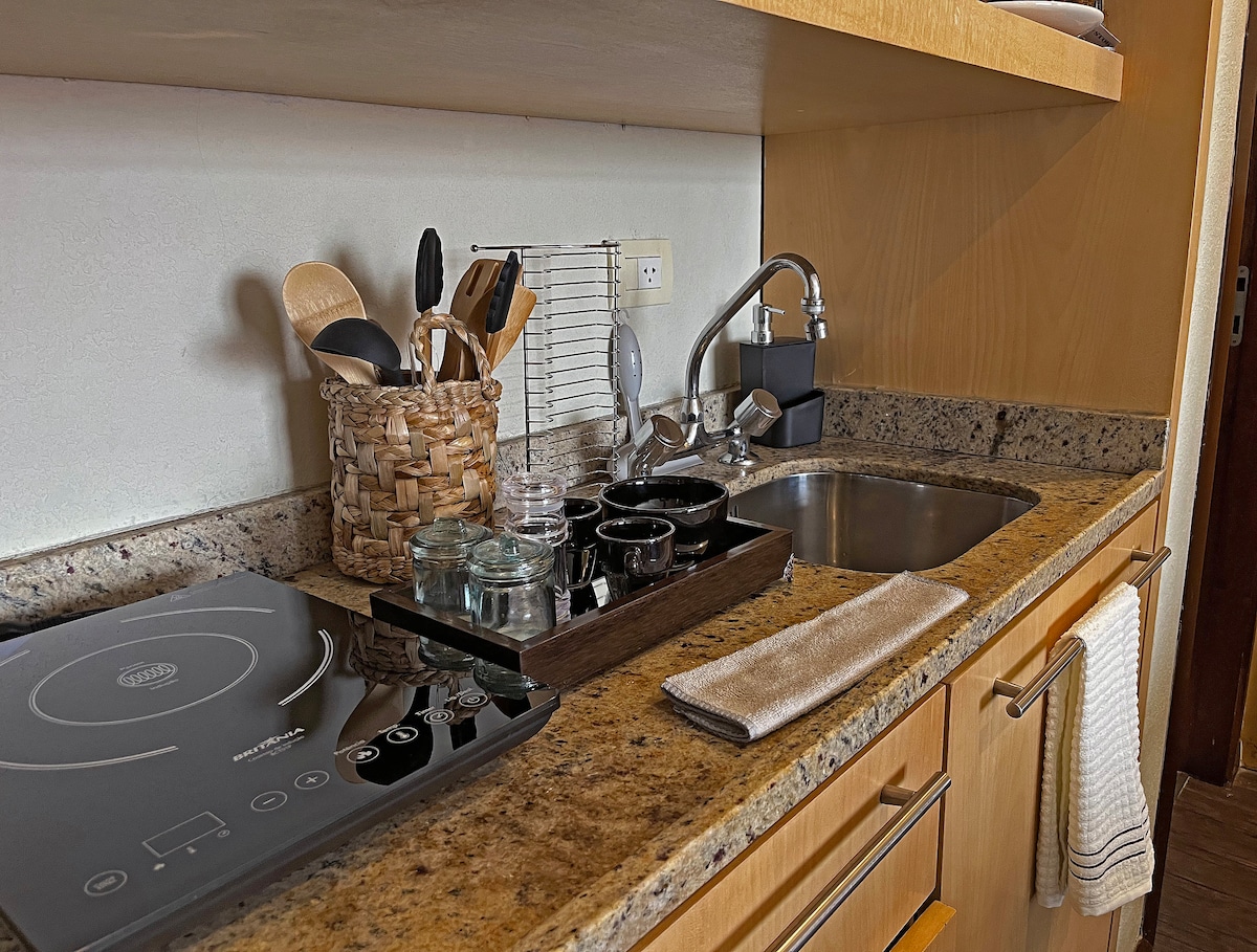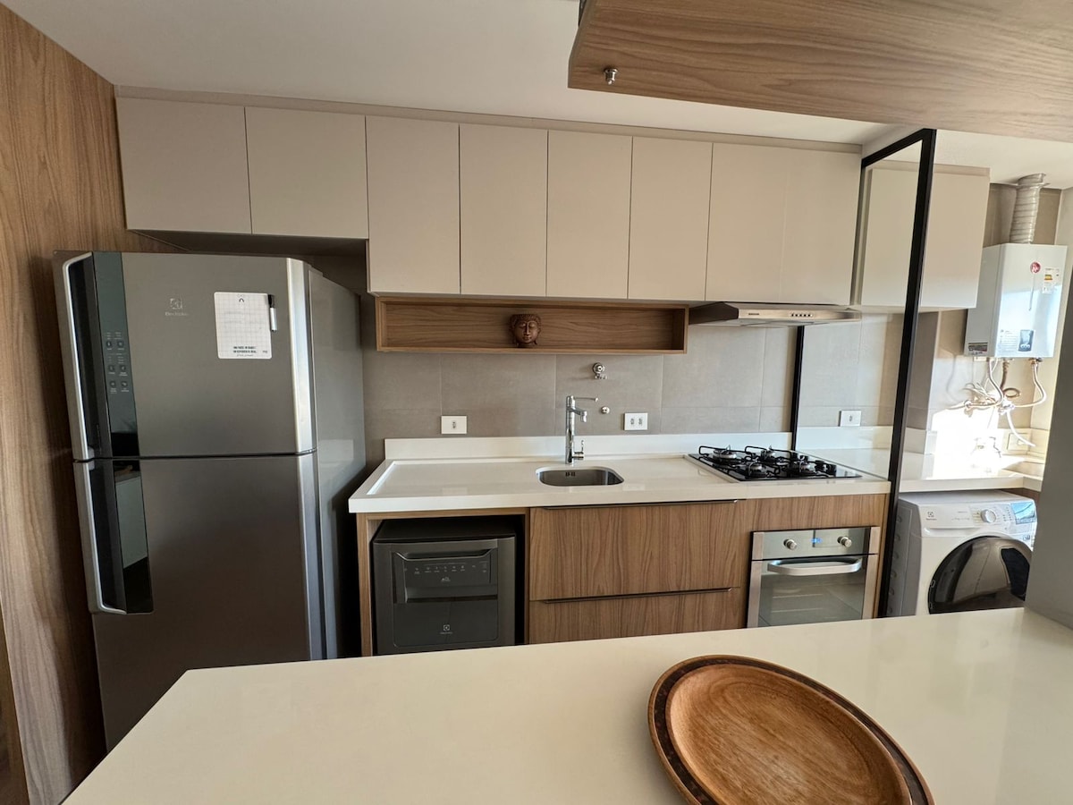 Studio de design exclusivo e alto padrão cheio de estilo, focado na melhor experiencia no AirBnB, ao lado do Shopping Estação. Gagarem não inclusa. Cozinha completa equipada com Geladeira, Fogão, Microondas , TV Smart 42", Cama Box Premium padrão Hotel, super ducha e wifi. Rede de proteção nas janelas e sofá cama muito confortável. No desejado Condominio LifeSpace, novo e com academia, piscina coberta e aquecida, espaço para SPA com sauna úmida e seca além de hidromassagem. Inesquecivel!