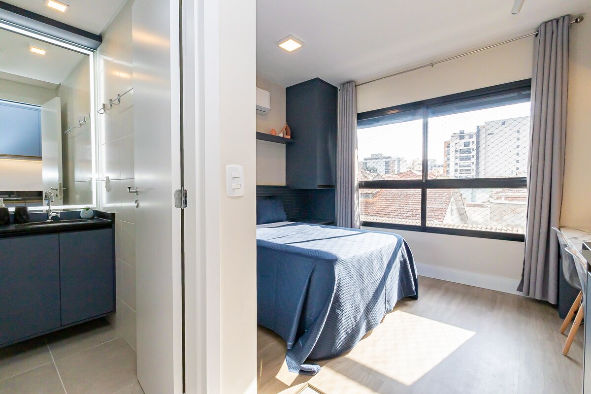 Sodobno studio stanovanje v Rebouçasu, 5 minut od Mercado Municipal, Shopping Estação ter v bližini kavarn in barov. Enostaven dostop: 10 minut do avtobusne postaje, 25 minut do letališča. Klima + ogrevanje; plinska prha; skupni delovni prostor; 400 Mb Wi‑Fi + pisalna miza; zakonska postelja z hotelsko posteljnino + zatemnitvene zavese; opremljena kuhinja; pametna TV za pretakanje; 24-urna samostojna prijava; pralnica in telovadnica v stavbi.