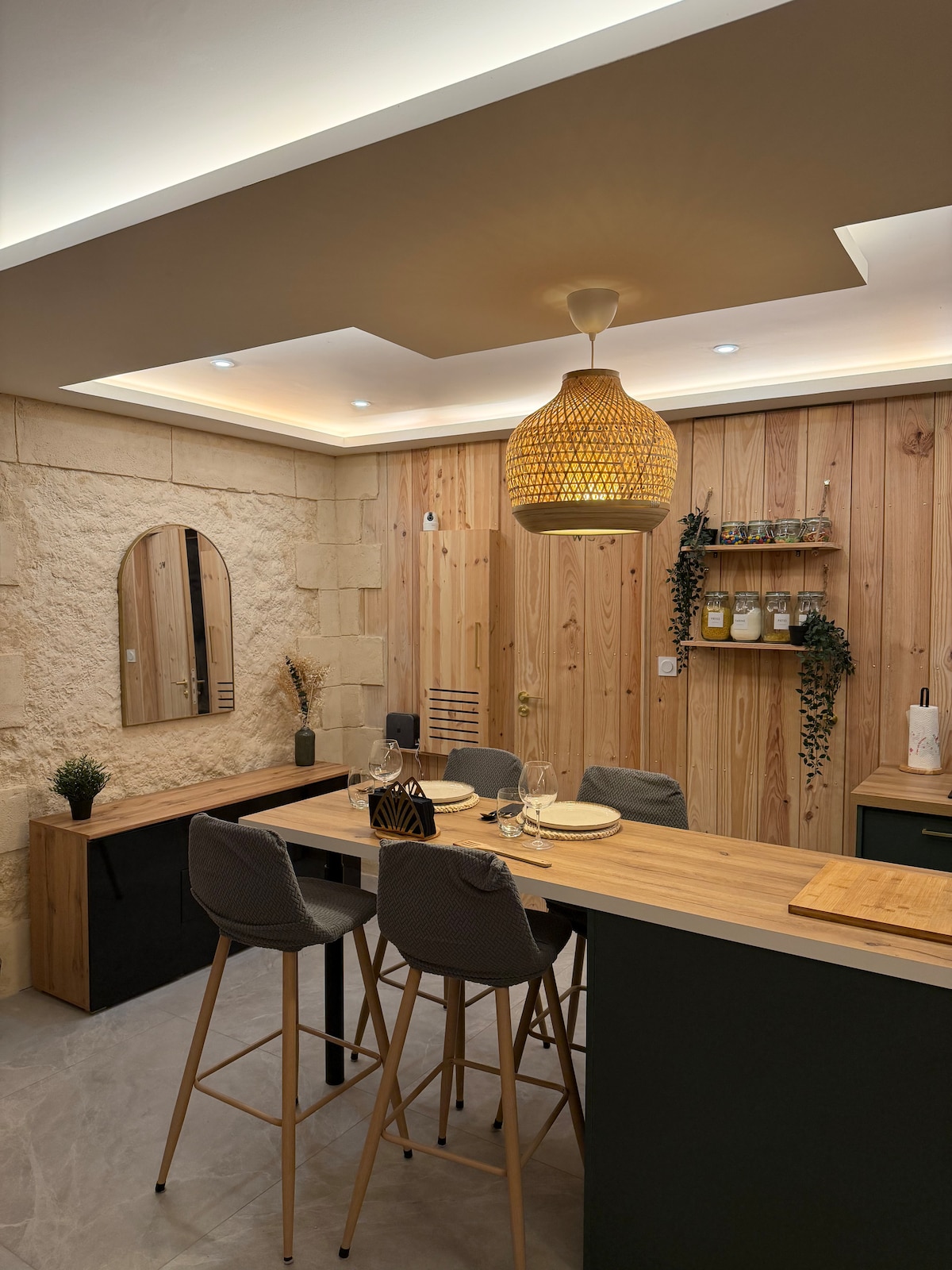 Bonjour nous vous accueillons avec plaisir dans ce logement pensé pour un couple ou une personne seule. Vous apprécierez l’harmonie entre le pin maritime, la pierre et le moderne. Laissez vous tenter par un moment de détente dans la balnéo, en solo ou en duo. Le logement dispose d’une table de massage, d’un écran cinéma avec vidéoprojecteur, d’une salle de bain avec WC séparés, et d’un grand séjour avec cuisine entièrement équipée. Au plaisir de vous accueillir dans notre belle région.