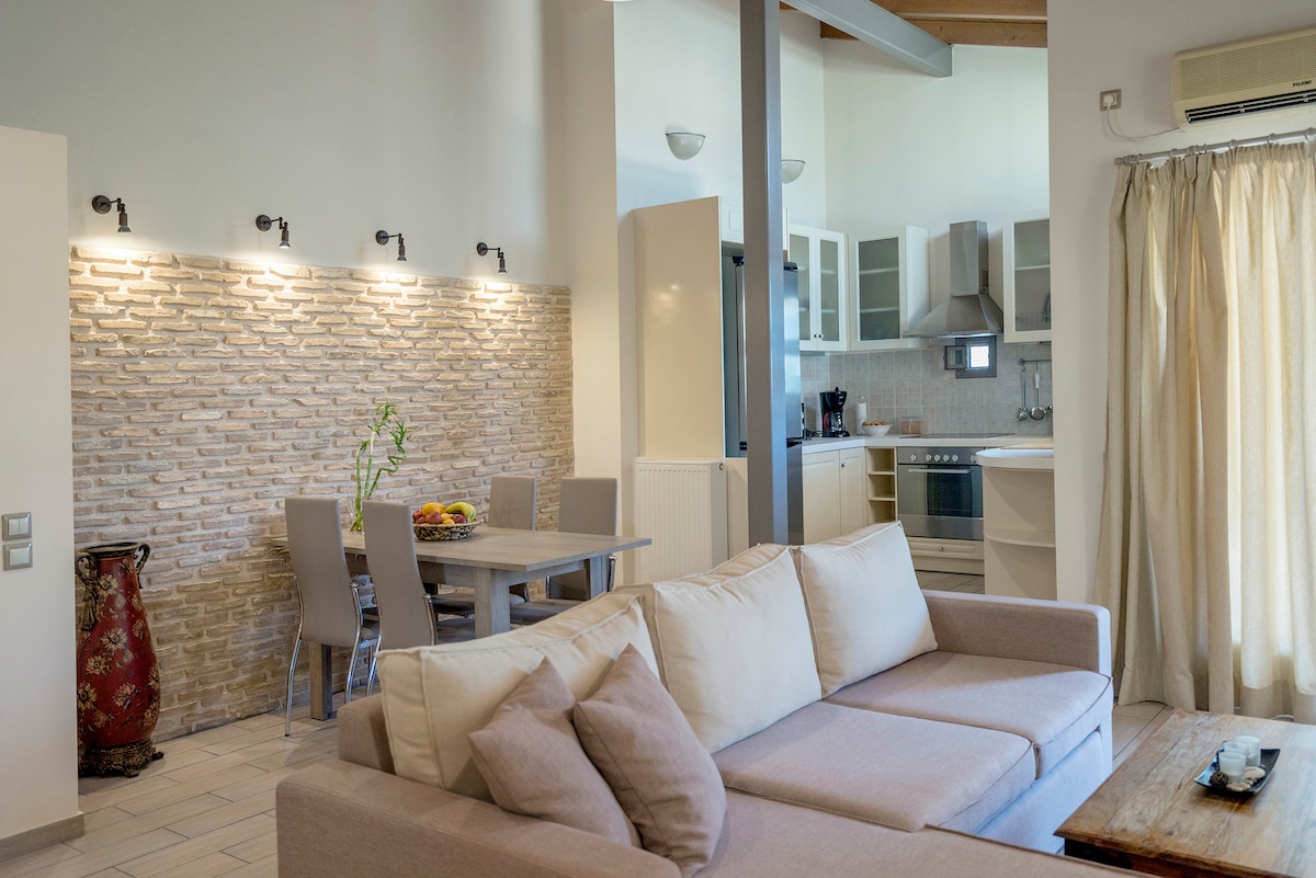 Minimalna suita, na novo prenovljena 10 minut od letališča. Neodvisno z zasebno kopalnico, teraso, vrtom in čudovitim razgledom. Njegova elegantna zasnova in sodoben slog vam bosta zagotovila nepozabno izkušnjo bivanja. Nahaja se na hribu, zelo blizu: - Metropolitan Expo (10 min), - pristanišče Rafina (15 min), - Smart Park - Zoološki park - Postaja podzemne železnice Idealno za počitnice, nakupovanje, poslovna potovanja ali ljudi, ki želijo delovati digitalno s hitrim in brezplačnim omrežjem Wi-Fi.
