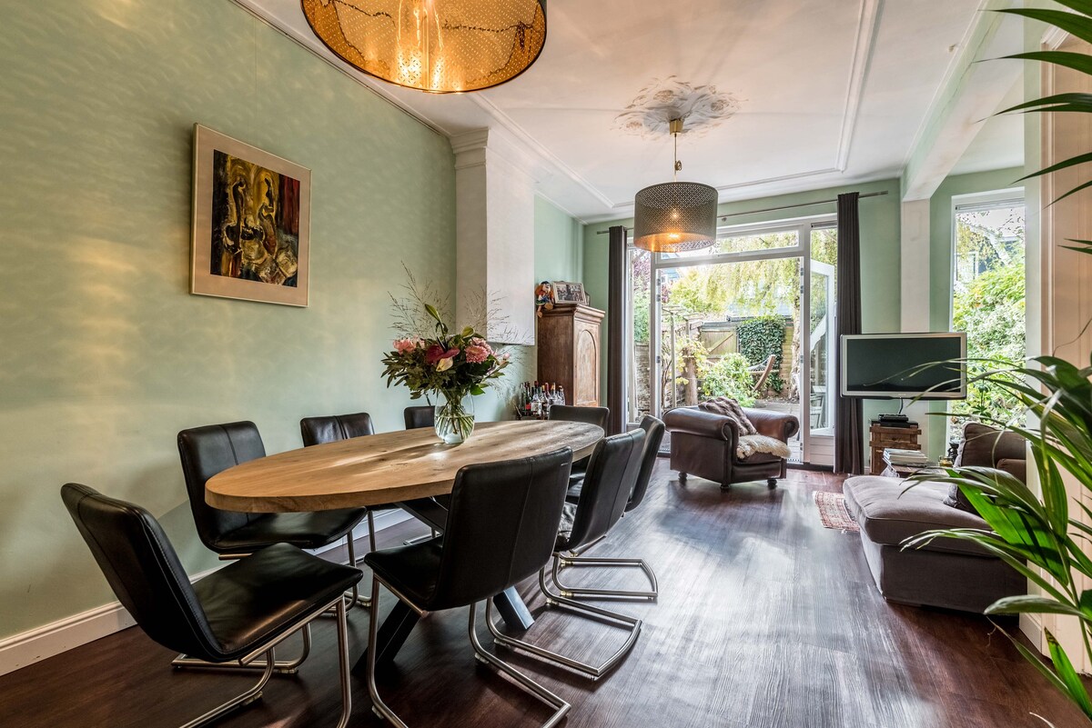 Prostorna vrstna hiša iz leta 1903. Ne sprejemamo skupin s povprečno starostjo, mlajšimi od 35 let. Največ 4 gostje - po zakonu - občinski predpisi. Udoben vrt, obrnjen proti jugozahodu, 4 dvoposteljne spalnice, 2,5 kopalnice, prostorna odprta kuhinja, jedilnica, dnevni prostor z dvojnimi vrati, ki se odpirajo na vrt.