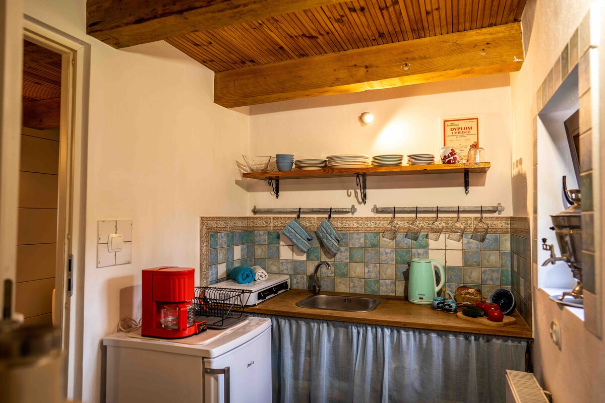 Odkrijte udobno hiško na deželi pod gozdom na mirnem podeželju, obdani s čudovito naravo, se sprehodite skozi gozd do jezera, občudujte razglede skozi okna, vdihnite svež zrak - vabimo vas :) - celoletna hiša -ne neposredno pod gozdom -ekskluzivna hiša z ograjeno parcelo 1200 m2 - Peč na drevesu je porjavljena - masažna kad na drva - doplačilo - čudovito sprehajalno območje, pogled na travnike, polja, gozd, očarljiva reka Noteć - sprejemamo hišne ljubljenčke, - postelje, brisače -histon, peskovnik