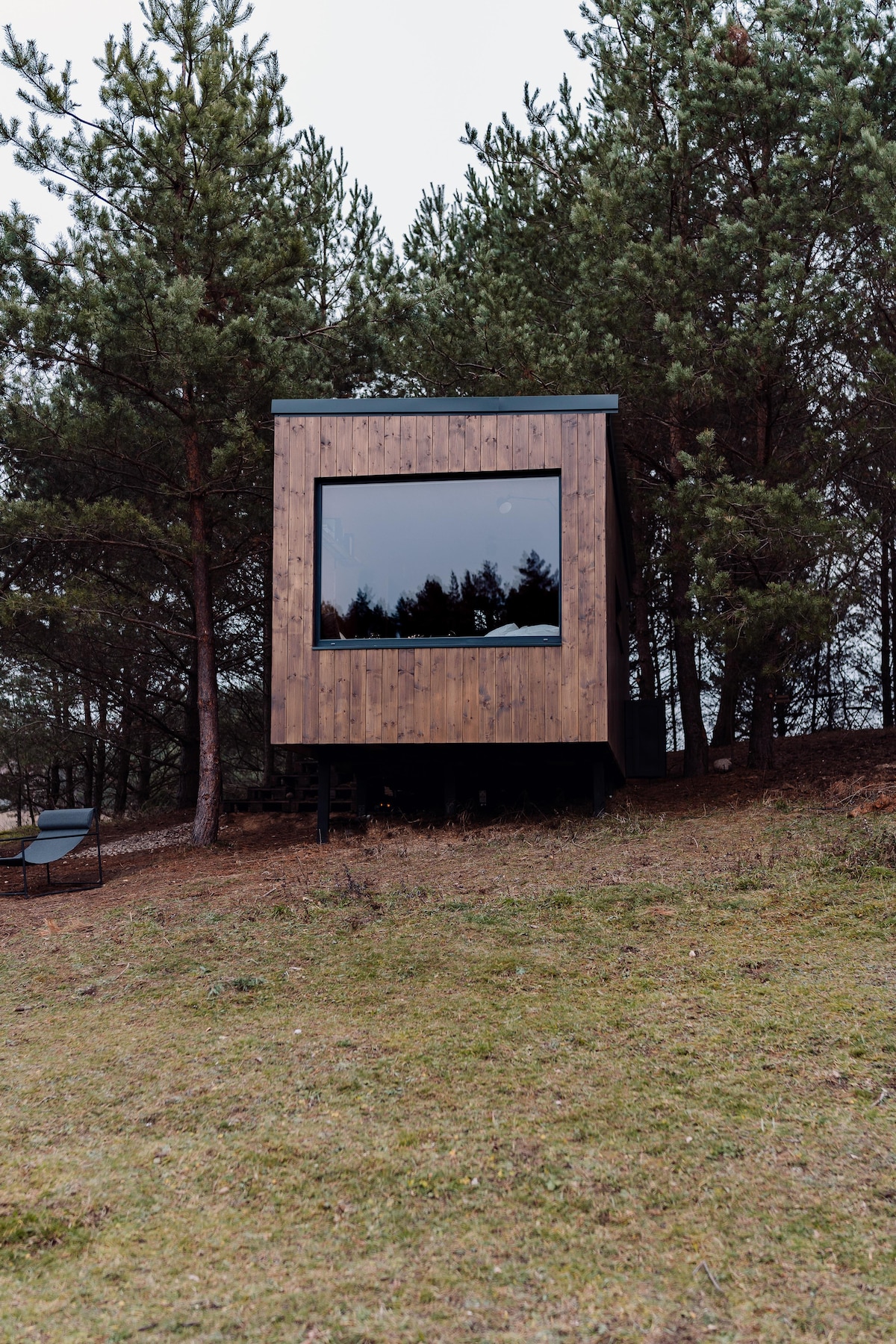 Bivali boste v ločeni leseni hiši, ločeni od ostalega dvorišča. Čista narava. S terase imate čudovit oddaljen razgled na hribovito travnato pokrajino. Tam boste uživali tudi v sončnih zahodih. Do dvorišča je 25 m, kjer lahko uporabljate tudi zimski vrt in bar ter teraso ob jezeru. Hiša je ogrevana s kaminom, ki oskrbuje tudi zgornje nadstropje z letalskimi vlaki. Poskrbeti boste morali za osvetlitev.