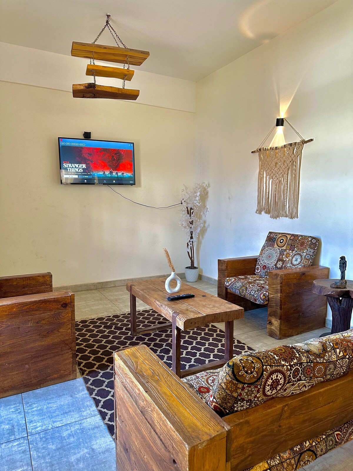 An homage to the raw yet charming essence of Dahab, this house captures the town’s untamed beauty and quiet warmth. Nestled in a local neighborhood with a rural vibe, it offers a sense of retreat while being just a 7-minute walk from the buzzy energy of the Lighthouse area and the beach. Begin your day with rooster calls and morning coffee in the shaded garden, and end it on the rooftop watching Sinai’s sunset before gathering by a quiet garden fire under the stars.