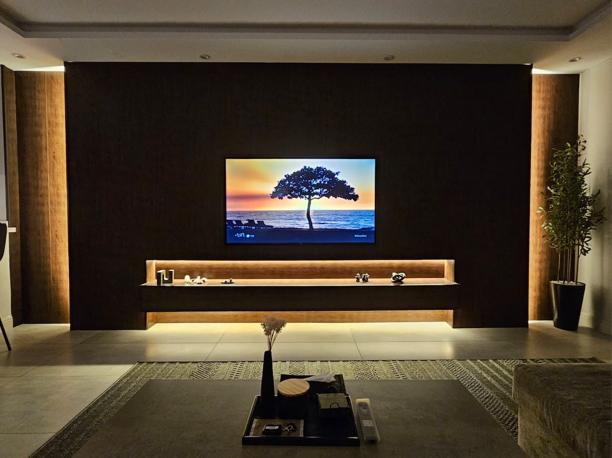 Uživajte v mirnem doživetju v tem vrhunskem bivališču. Z neverjetnim 65-palčnim pametnim televizorjem, Netflixom , družabnimi igrami in še marsikaj. Topla in hladna kad. Lokacija je na čudoviti lokaciji blizu vsega, kar potrebujete, kot so restavracije, storitve, nakupovalna središča, železniška postaja.