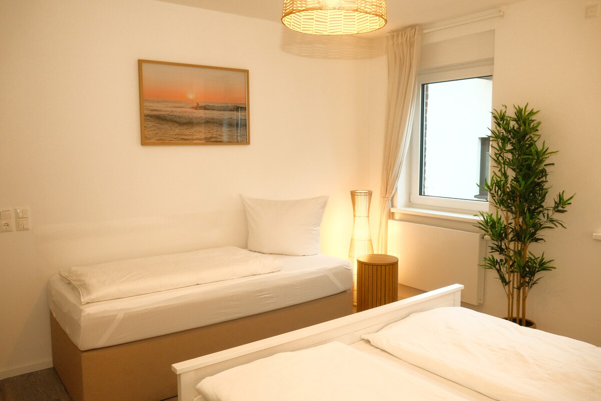 Unsere Ferienwohnung "Funky Four" für bis zu 6 Personen wurde im Jahr 2022 fertig gestellt. Sie ist modern, strandnah und sowohl stylisch als auch gemütlich eingerichtet, barrierearm und mit hohem Komfort. Die Ferienwohnung besticht u. a. besonders durch ihre tolle Lage fast direkt hinter dem Deich, nur 170m vom Meer entfernt und hat einen eigenen Parkplatz. In 3 Minuten erreicht ihr zu Fuß die Promenade sowie das Meer. An kalten Tagen verwöhnt euch die Sauna und garantiert Ruhe und Entspannung.