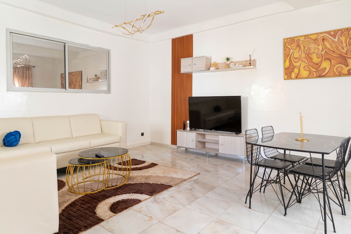 Bienvenue à Bô Séjour votre appartement cosy et climatisé, situé à la cité Africa, juste à 5 minutes de la plage de Ouakam. Niché dans un quartier résidentiel rare de la capitale calme et sécurisé. Cet appartement soigneusement décoré vous offre la chaleur de l’hospitalité sénégalaise avec le confort moderne. Proche du Monument de la Renaissance et du Phare des Mamelles, idéal pour couples, voyageurs et nomades digitaux en quête de style, calme et connexion.
