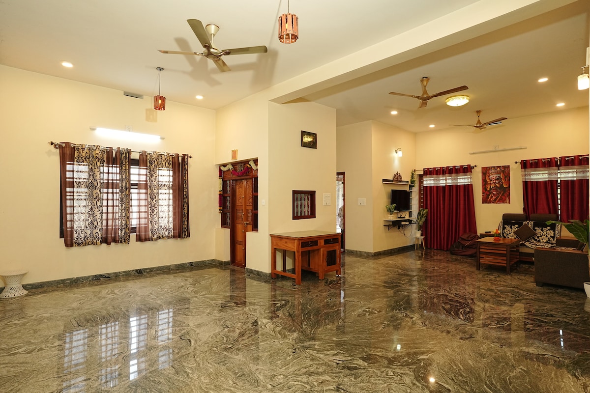 (po 22. uri ni dovoljen glasen hrup in alkohol ni dovoljen) Rezervirajte, če lahko ponoči molčite, ker se nahaja v stanovanjskem območju. Ko boste bivali v tem bivališču, ki se nahaja v središču mesta, bo vaša družina blizu vsega. Nahaja se 5 minut stran od mesta Mudigere. Prostorno opremljeno prenočišče s toplo vodo , kuhinjo in parkiriščem. V bližini je veliko turističnih znamenitosti, kraj pa je preveč dostopen za mudigere town, kjer lahko dobite restavracije,živila in vse ostalo!