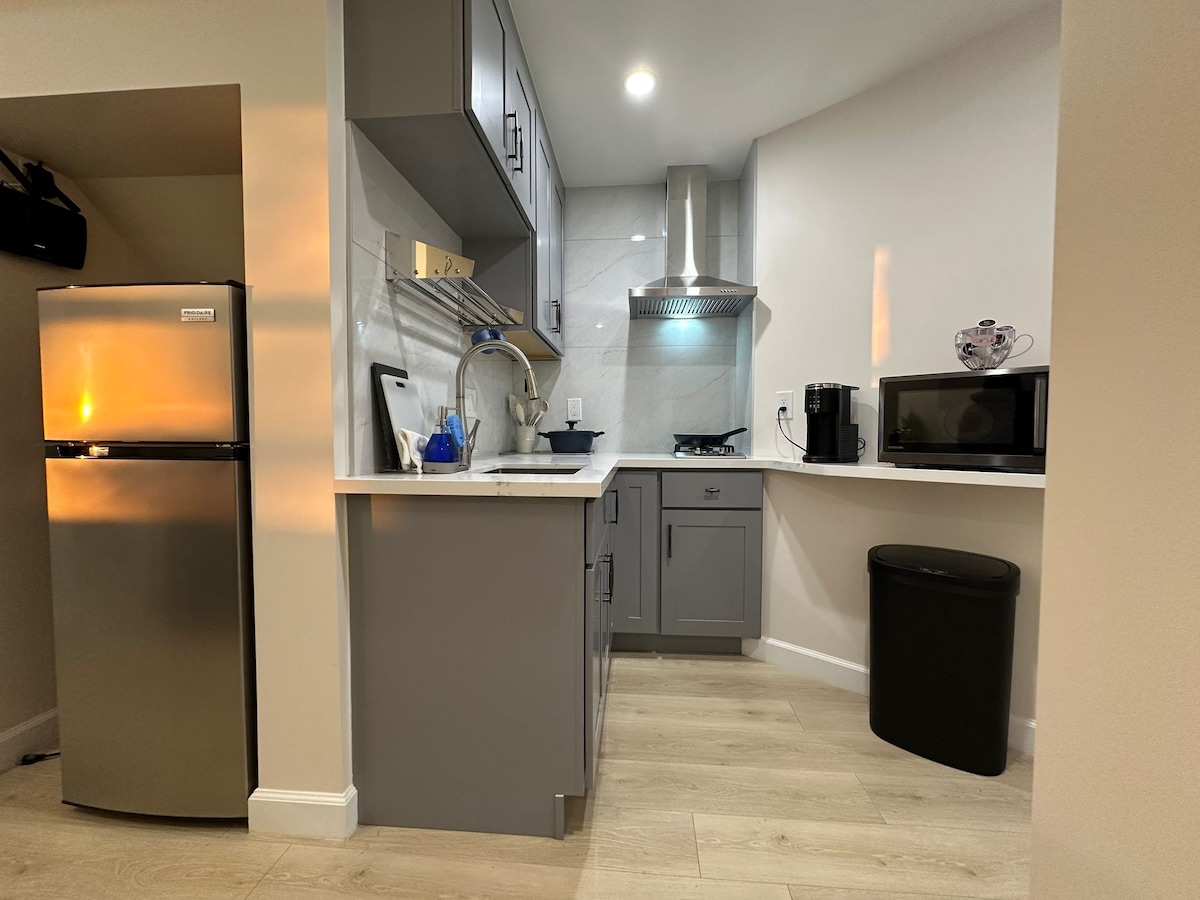 Dobrodošli v našem popolnoma novem udobnem apartmaju z 2 spalnicama in 2 kopalnicama. Ta udoben prostor je popoln za največ 4 odrasle in 2 otroka. Popolnoma založena kuhinjska niša, cvrtnik, kavni aparat Keurig s stroki, električni čajnik, mikrovalovna pečica, masažni stol in 2 visokotehnološka kamina z grelniki. Prenosni štedilnik. Ena kopalnica ima bide. 2 pametna televizorja in konzola serije Xbox S za ljubitelje iger na srečo. Opremljeno dvorišče. Otroški stol za hranjenje, Pack-N-play so na voljo na zahtevo. Pralni/sušilni stroj v enoti. Parkiranje je na dovozu.